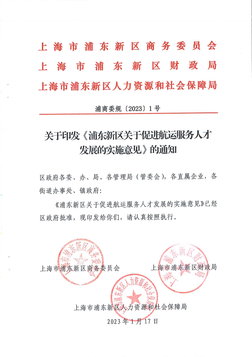为加快打造浦东国际航运中心核心区人才集聚高地,根据《关于新时代浦东新区全面推进社会主义现代化建设引领区人才发展的实施意见》(浦委发〔2023〕1号),现就促进浦东新区航运服务人才发展制定如下意见。
