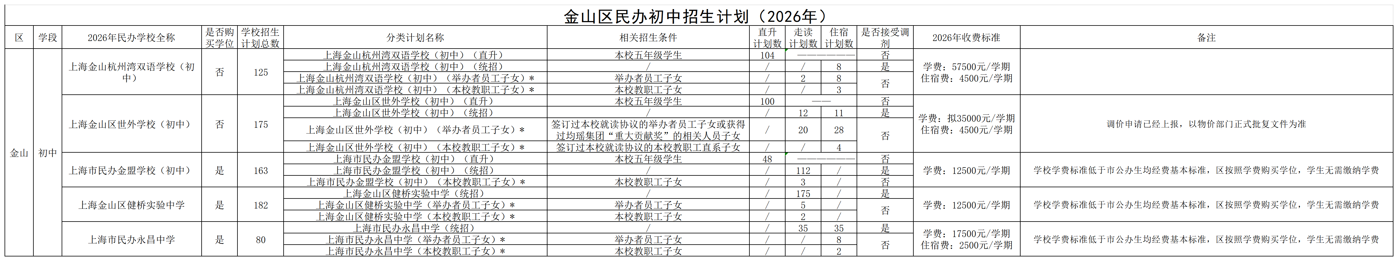 发布8.2026年金山区民办学校招生分类计划及学费情况.xls