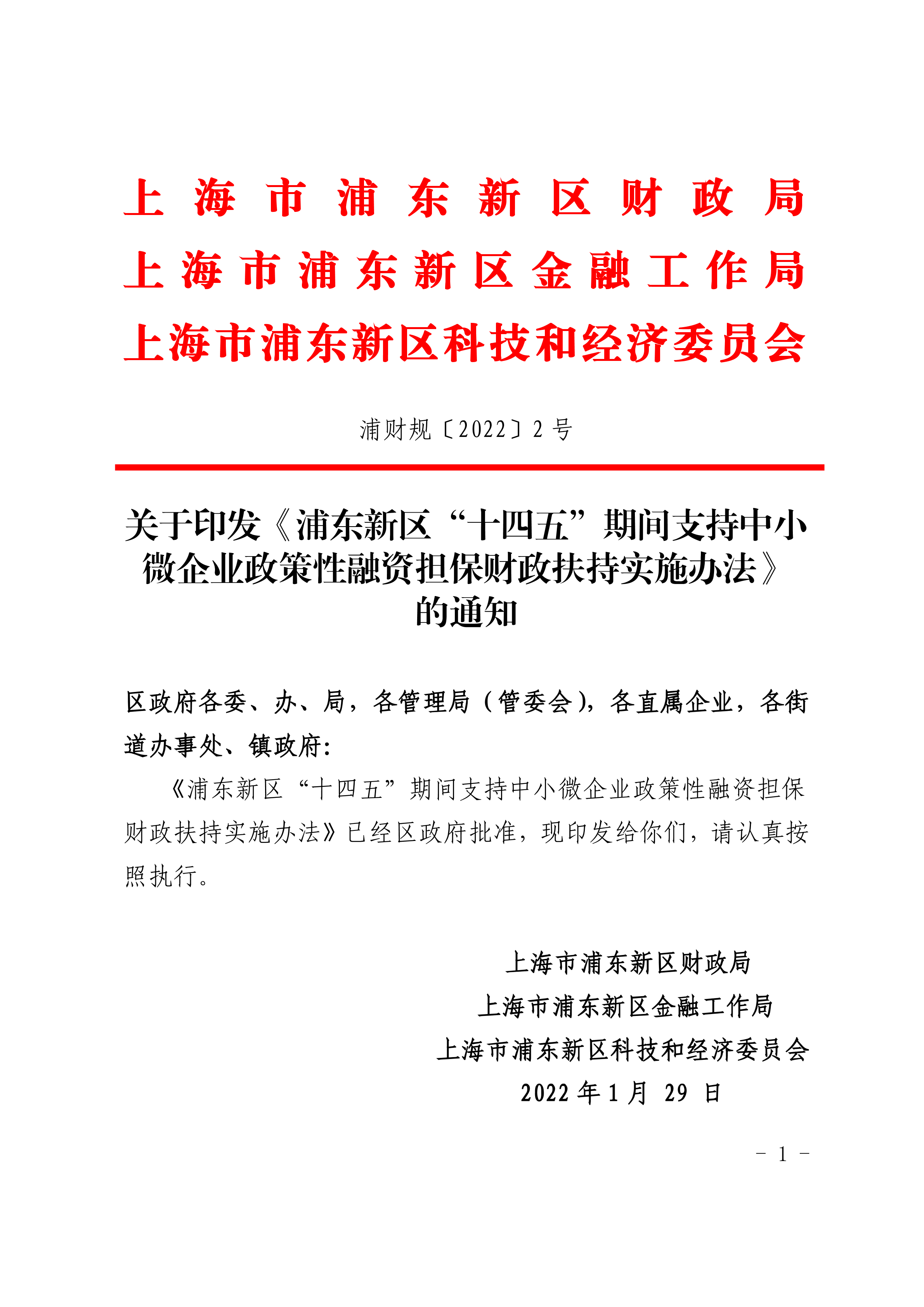 关于印发《浦东新区“十四五”期间支持中小微企业政策性融资担保财政扶持实施办法》的通知