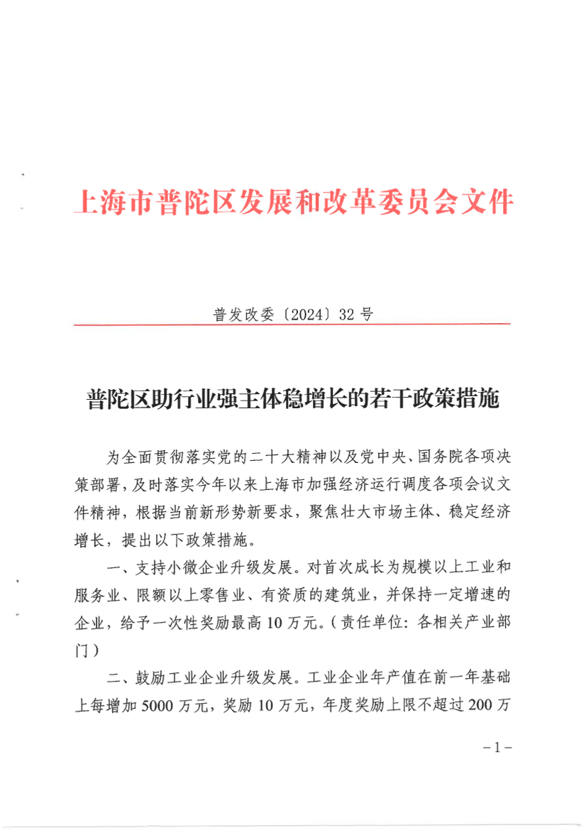 一、支持小微企业升级发展。对首次成长为规模以上工业和服务业、限额以上零售业、有资质的建筑业,并保持一定增速的企业,给予一次性奖励最高10万元。(责任单位:各相关产业部门)