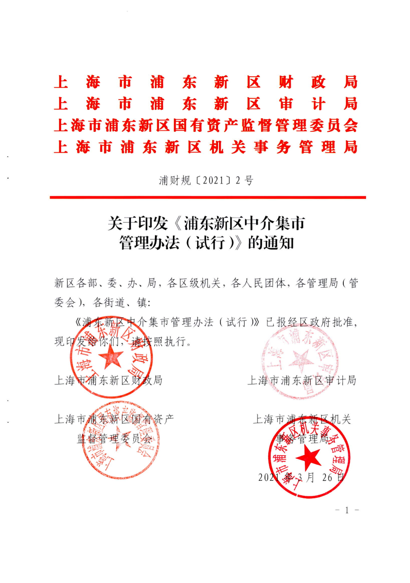 第一条 为加强浦东新区中介集市的管理,规范中介集市的交易行为,优化营商环境,根据《优化营商环境条例》(国务院令第722号)、《政府购买服务管理办法》(财政部令第102号)及其他有关规定,制定本办法。