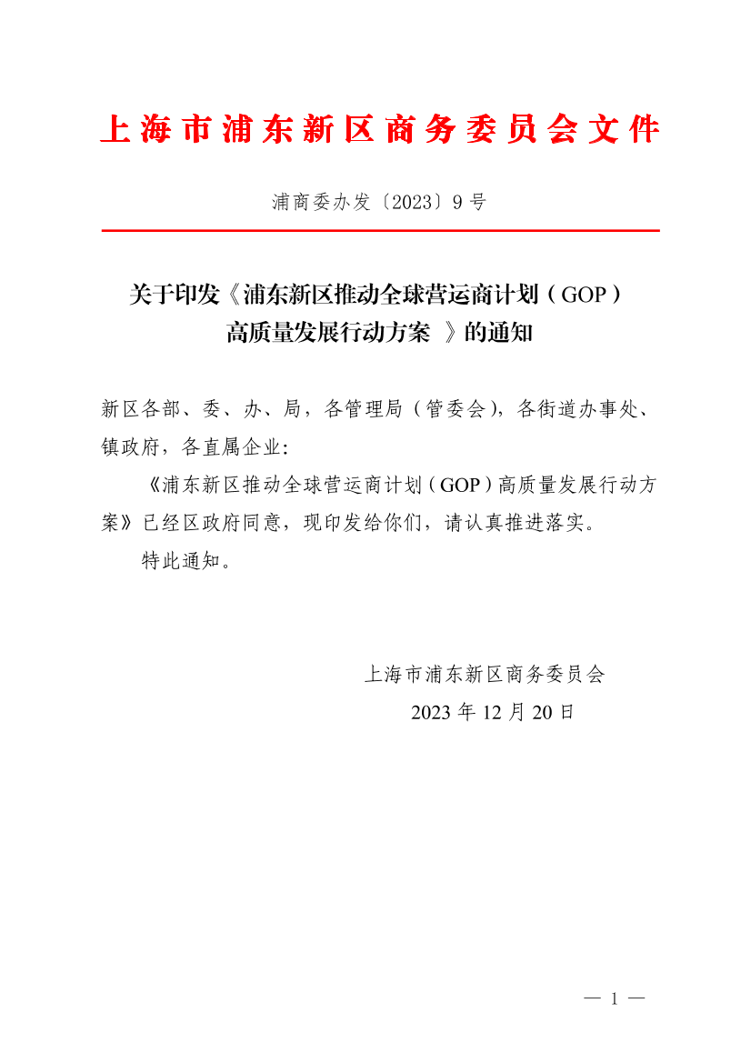 浦东新区推动全球营运商计划(GOP)高质量发展行动方案