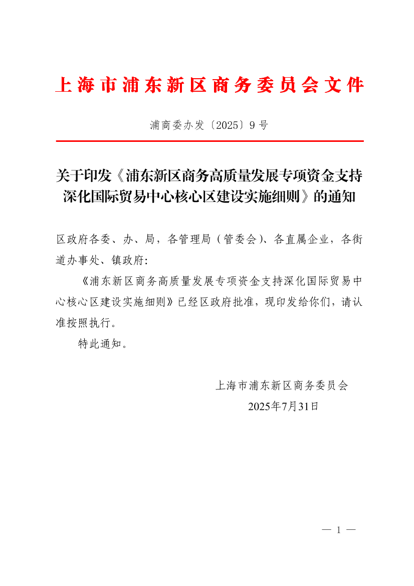 浦东新区商务高质量发展专项资金支持深化国际贸易中心核心区建设实施细则