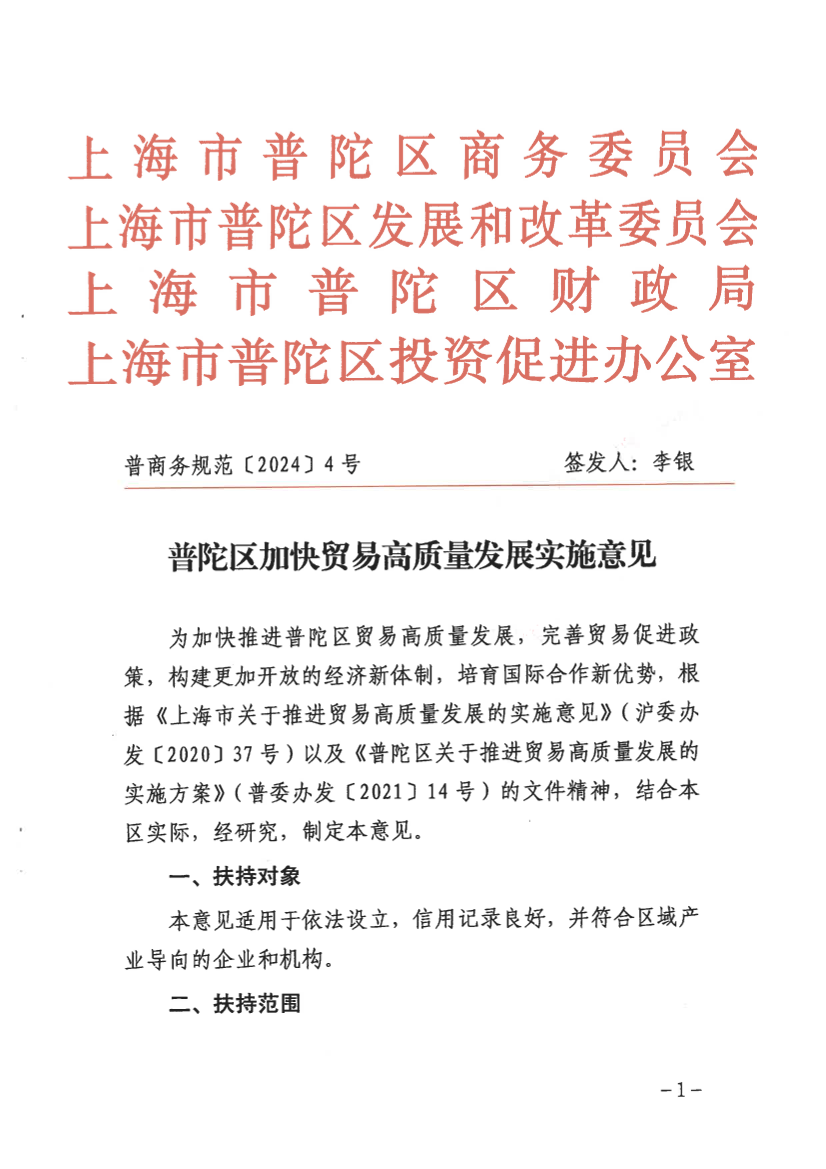 为加快推进普陀区贸易高质量发展,完善贸易促进政策,构建更加开放的经济新体制,培育国际合作新优势,根据《上海市关于推进贸易高质量发展的实施意见》(沪委办发〔2020〕37号)以及《普陀区关于推进贸易高质量发展的实施方案》(普委办发〔2021〕14号)的文件精神,结合本区实际,经研究,制定本意见。
