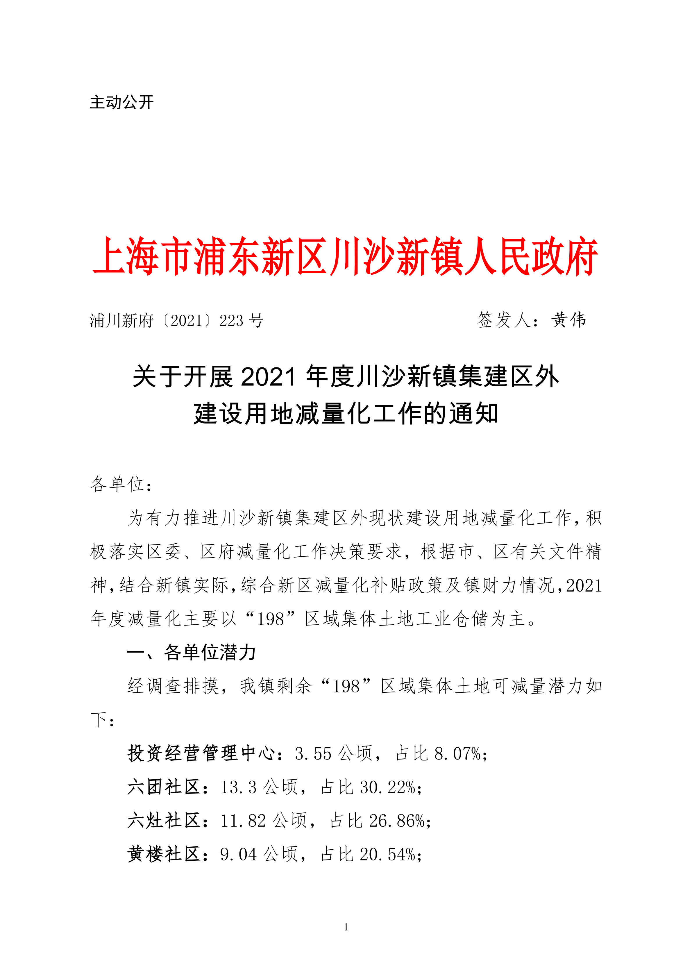 关于开展2021年度川沙新镇集建区外建设用地减量化工作的通知
