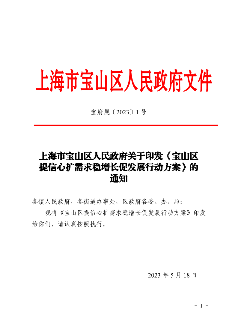 现将《宝山区提信心扩需求稳增长促发展行动方案》印发给你们,请认真按照执行。