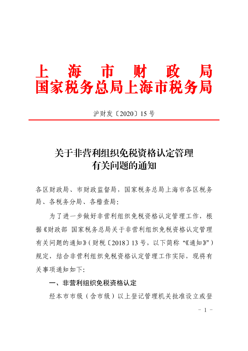 本通知自2020年12月1日起实施。《上海市财政局上海市国家税务局上海市地方税务局关于转发〈财政部国家税务总局关于非营利组织免税资格认定管理有关问题的通知〉的通知》(沪财税〔2014〕72号)同时废止。