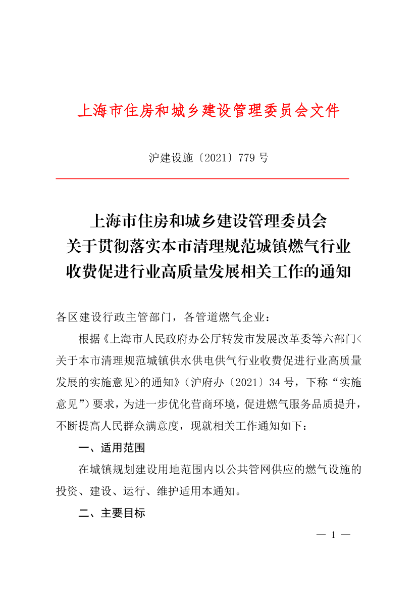 根据《上海市人民政府办公厅转发市发展改革委等六部门<关于本市清理规范城镇供水供电供气行业收费促进行业高质量发展的实施意见>的通知》(沪府办〔2021〕34号,下称“实施意见”)要求,为进一步优化营商环境,促进燃气服务品质提升,不断提高人民群众满意度,现就相关工作通知如下: