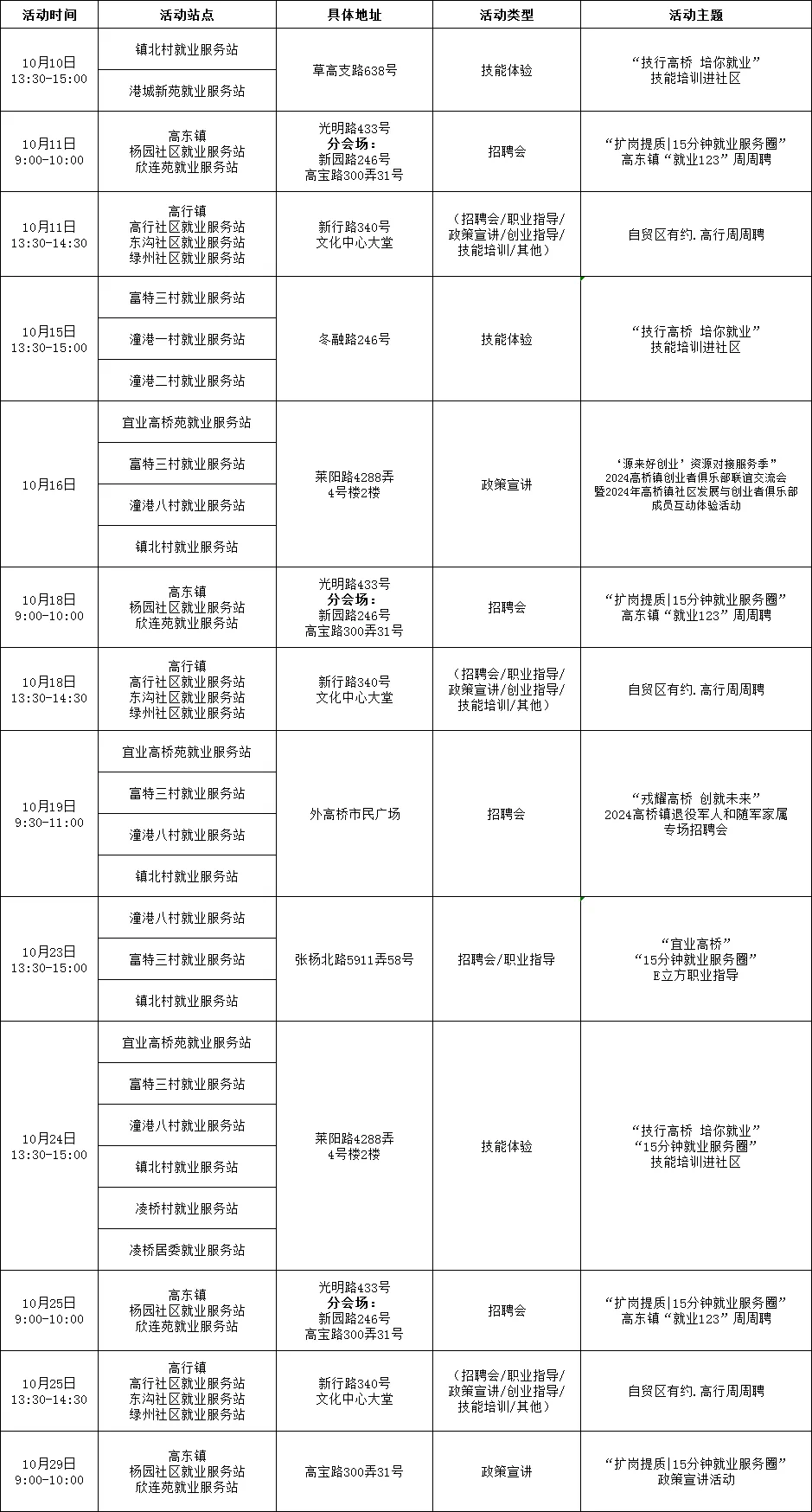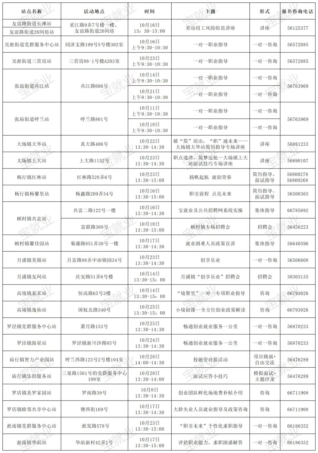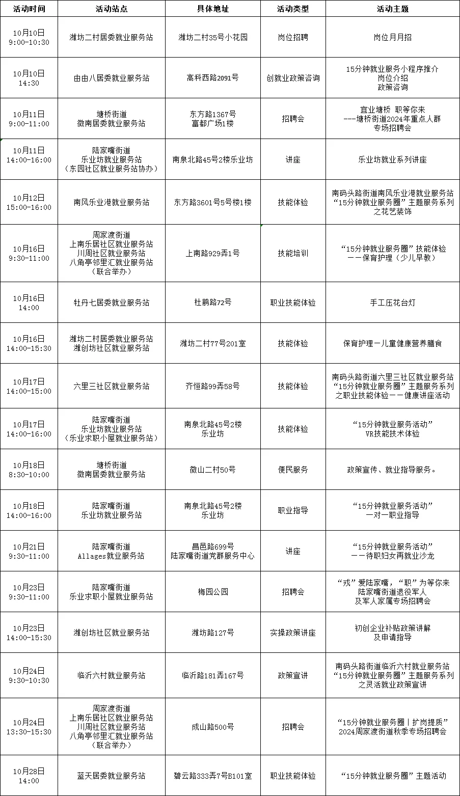“15分钟就业服务圈”社区就业服务站点建设市政府实事项目作为人社部门常态化政府开放活动之一,我们将持续发布精彩服务内容,今天为大家带来徐汇、嘉定、浦东新区、崇明区、宝山区、金山区5区近期就业活动安排!