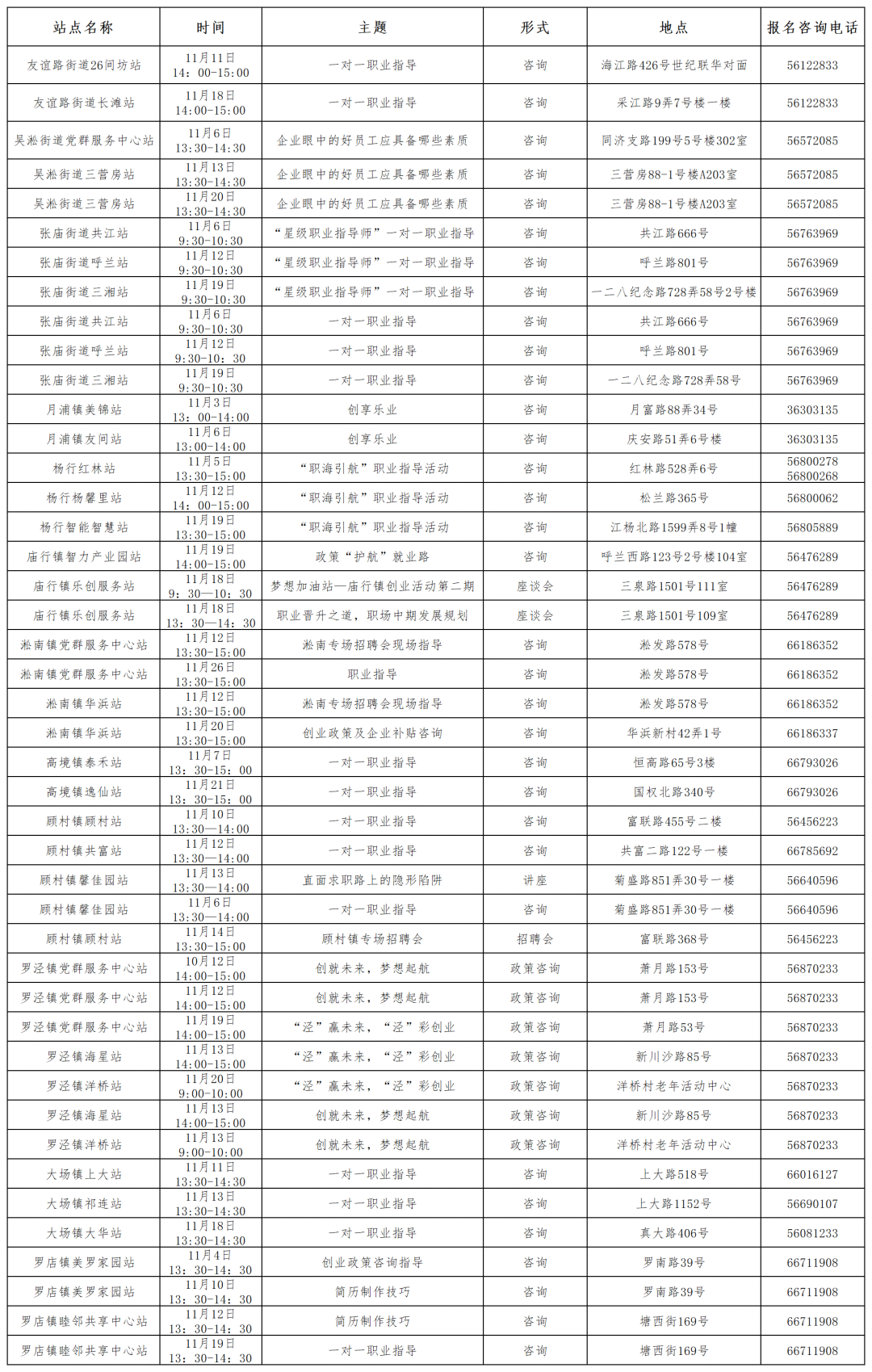 “15分钟就业服务圈”社区就业服务站点建设市政府实事项目作为人社部门常态化政府开放活动之一,我们将持续发布精彩服务内容,今天为大家带来黄浦区、长宁区、嘉定区、金山区、青浦区、崇明区、杨浦区、闵行区、宝山区近期就业活动安排!