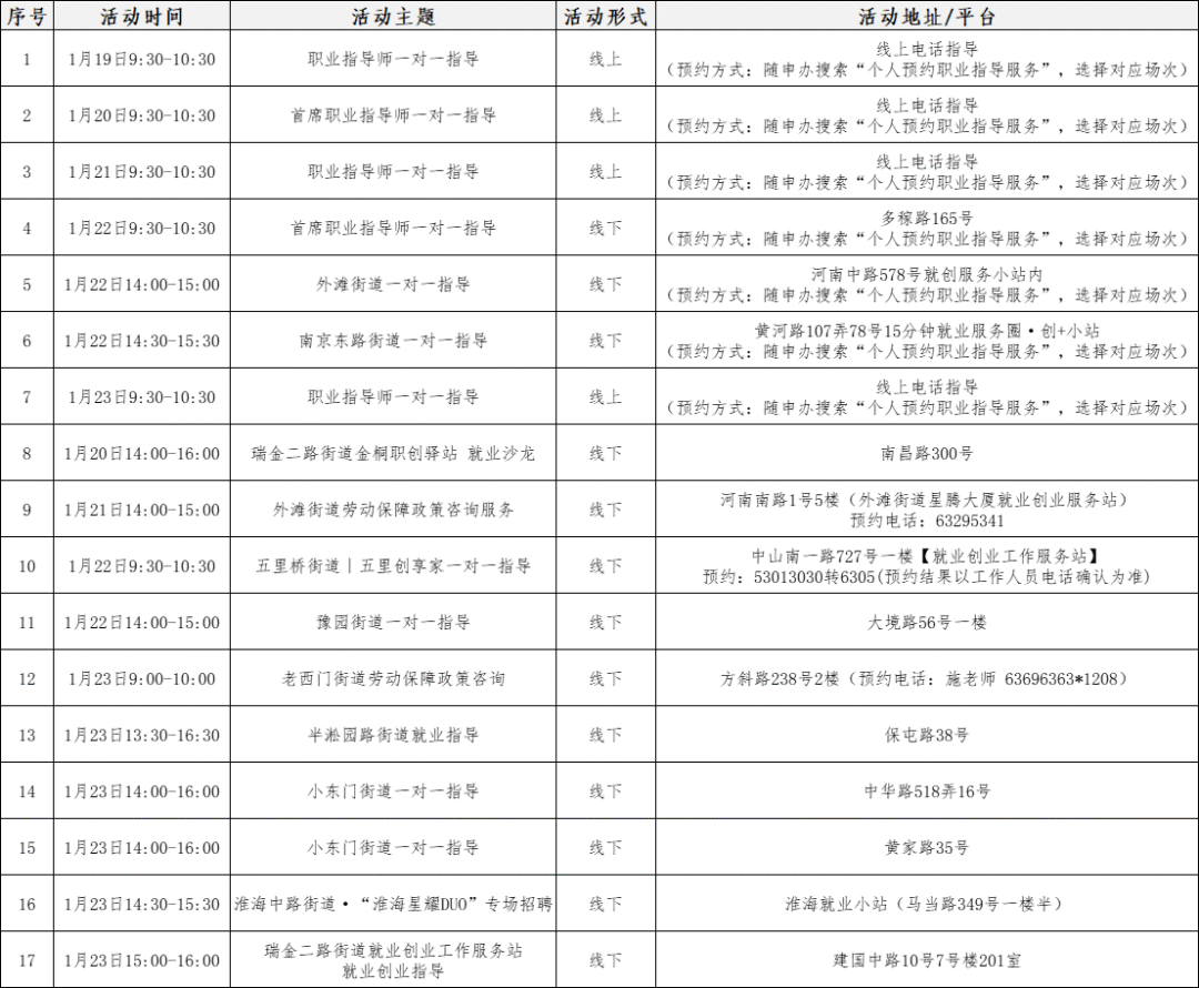 “15分钟就业服务圈”社区就业服务站点建设市政府实事项目作为人社部门常态化政府开放活动之一,我们将持续发布精彩服务内容,今天为大家带来黄浦区、长宁区、闵行区、青浦区、松江区、崇明区、静安区、杨浦区、金山区近期就业活动安排!