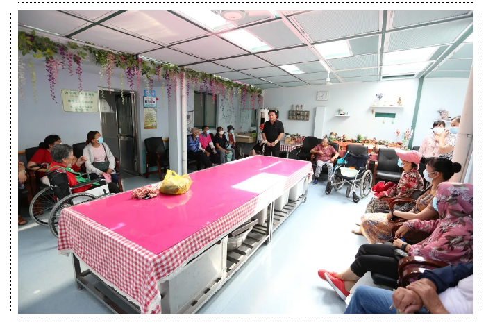 代表们首先参观了位于堰泾村的幸福老人村。经负责人介绍幸福老人村又称上海叶榭社区堰泾长者照护之家,在这里入住的老人,多是本村或是邻近村庄的村民,彼此相互熟悉,环境没有改变,依然可以侍弄瓜果蔬菜,生活却得到了全方位的照料,从助餐、洗浴到日间活动等等,实现了“不离乡土、不离乡邻、不离乡音、不离乡情”的互助式农村养老服务模式。
