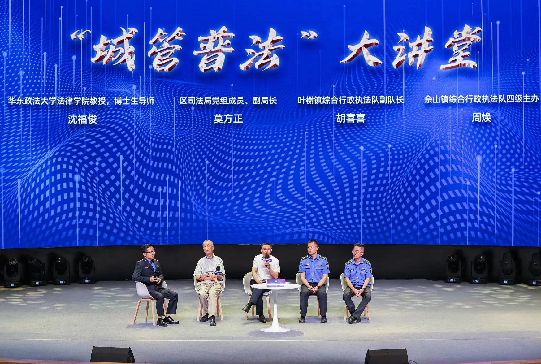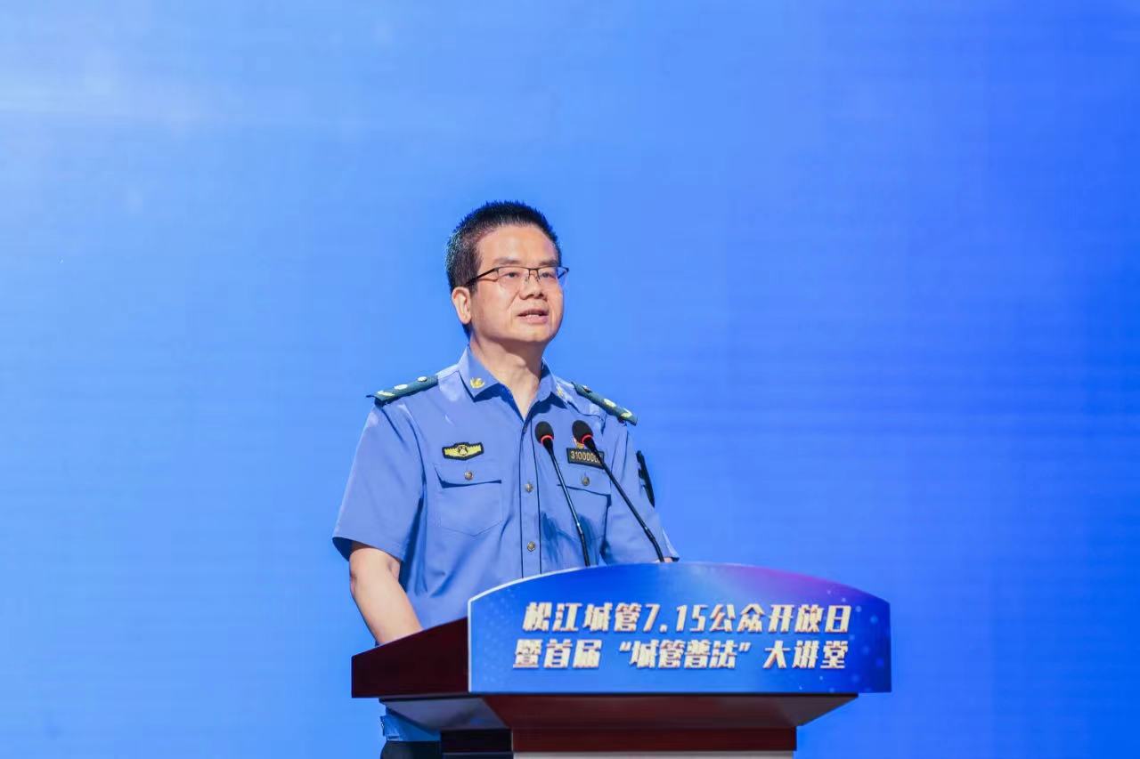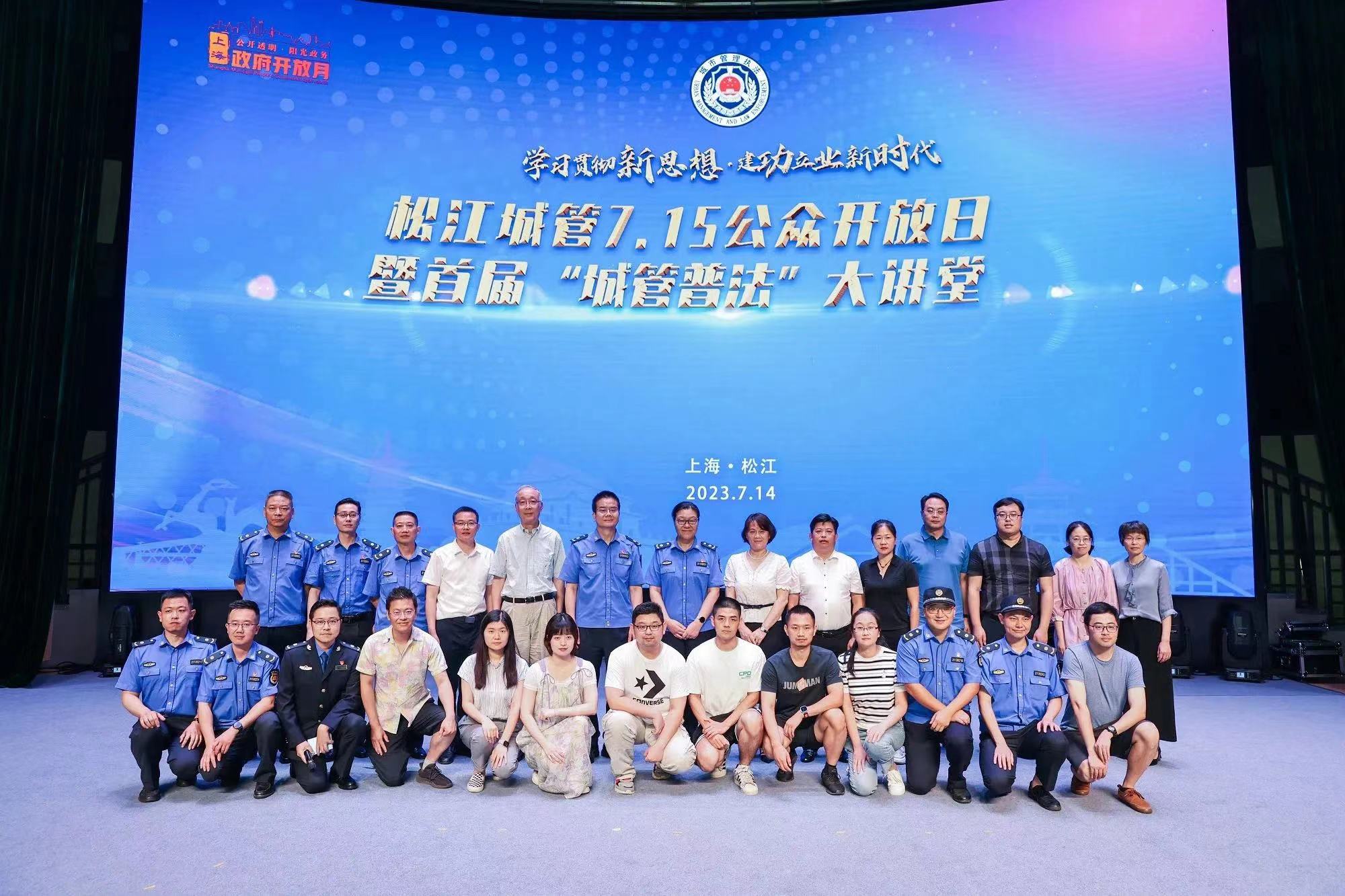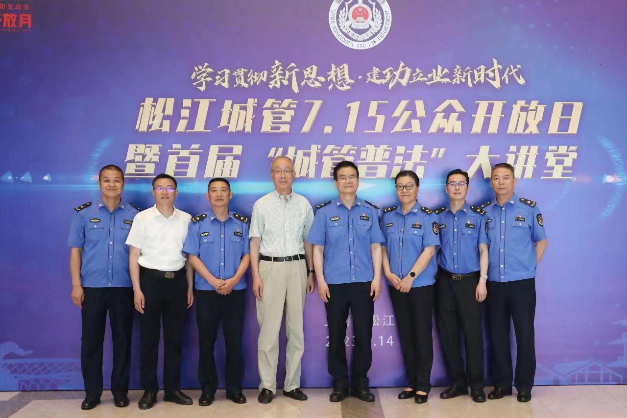 随后,市城管执法局党组成员、副局长姜宏琳,区城管执法局局党组书记、局长朱慧敏,华东政法大学法律学院教授、博士生导师沈福俊,区司法局副局长莫方正,城管人民监督员代表顾芙蓉,市民代表黄曹顺共同启动了松江城管7.15公众开放日暨首届“城管普法”大讲堂活动。