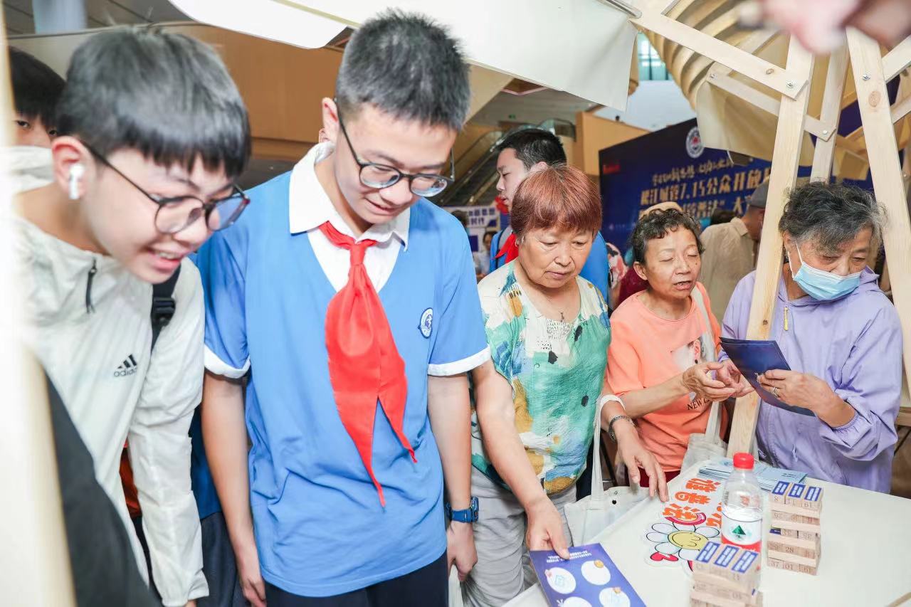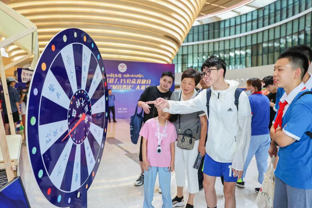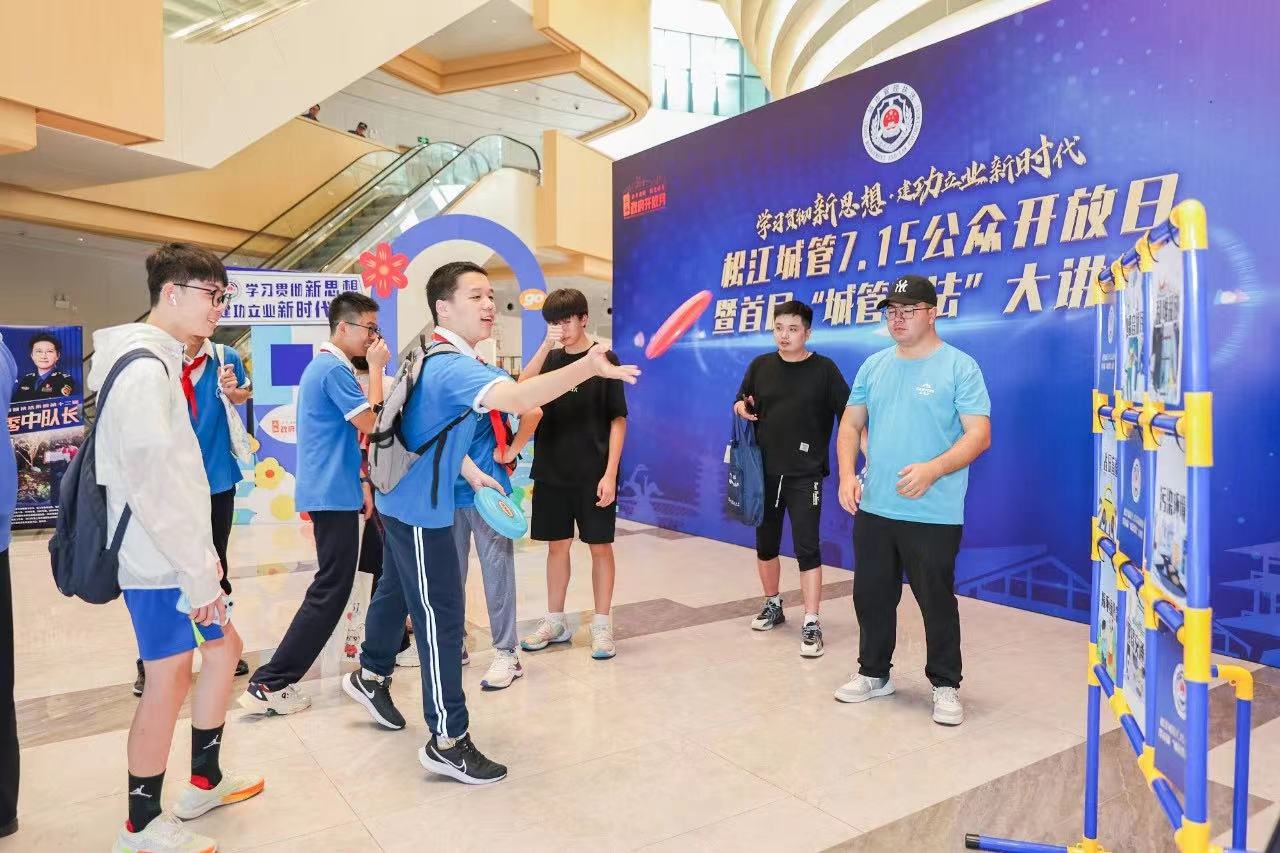 场外,亲子家庭、市民群众走进松江城管715公众开放日现场,参与了一场“普法集市”,通过现场游戏互动了解松江城管的工作和日常。