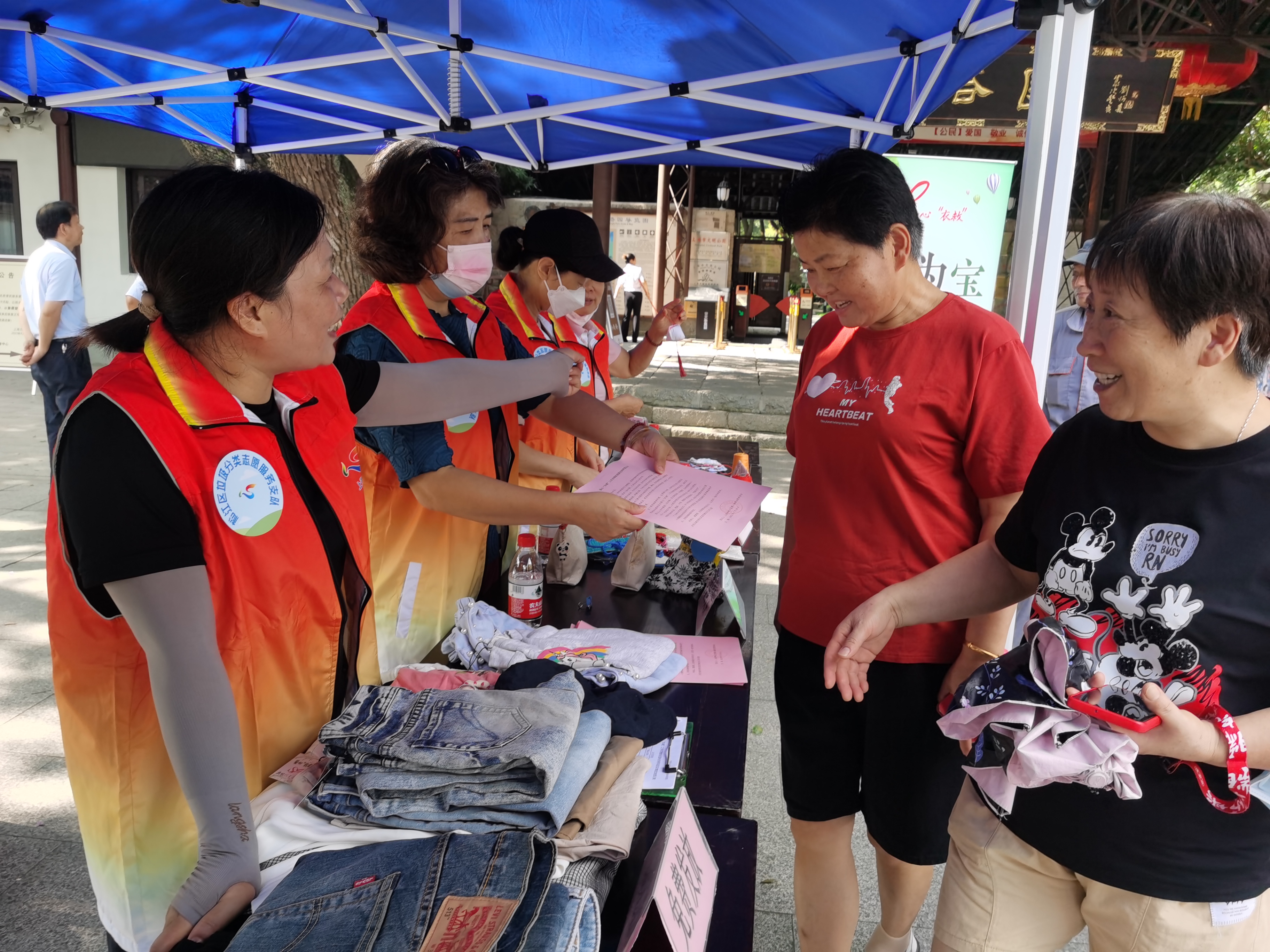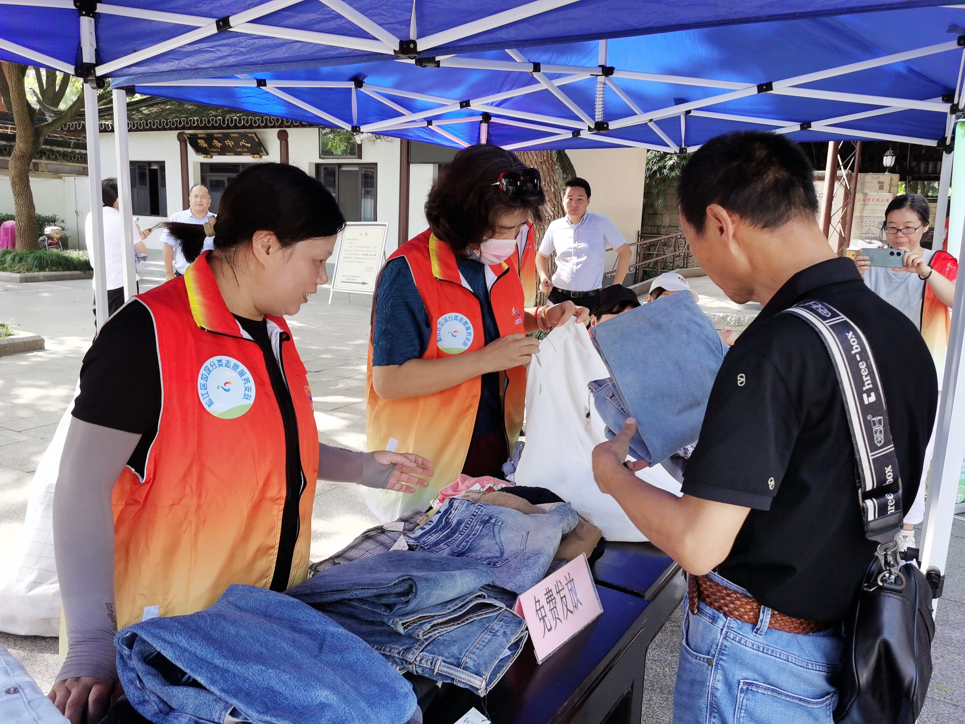 区爱心助困志愿者协会现场开展“爱心衣救”旧衣回收公益集市,通过闲置衣物现场募集回收、废旧衣物创意改造现场教学、已清洗消毒二手衣物现场捐赠、变废为宝手工作品义卖吸引众多居民踊跃参与,积极营造资源循环利用、公益慈善互助的社会氛围,助力打造“公园里的爱心衣物回收点”。