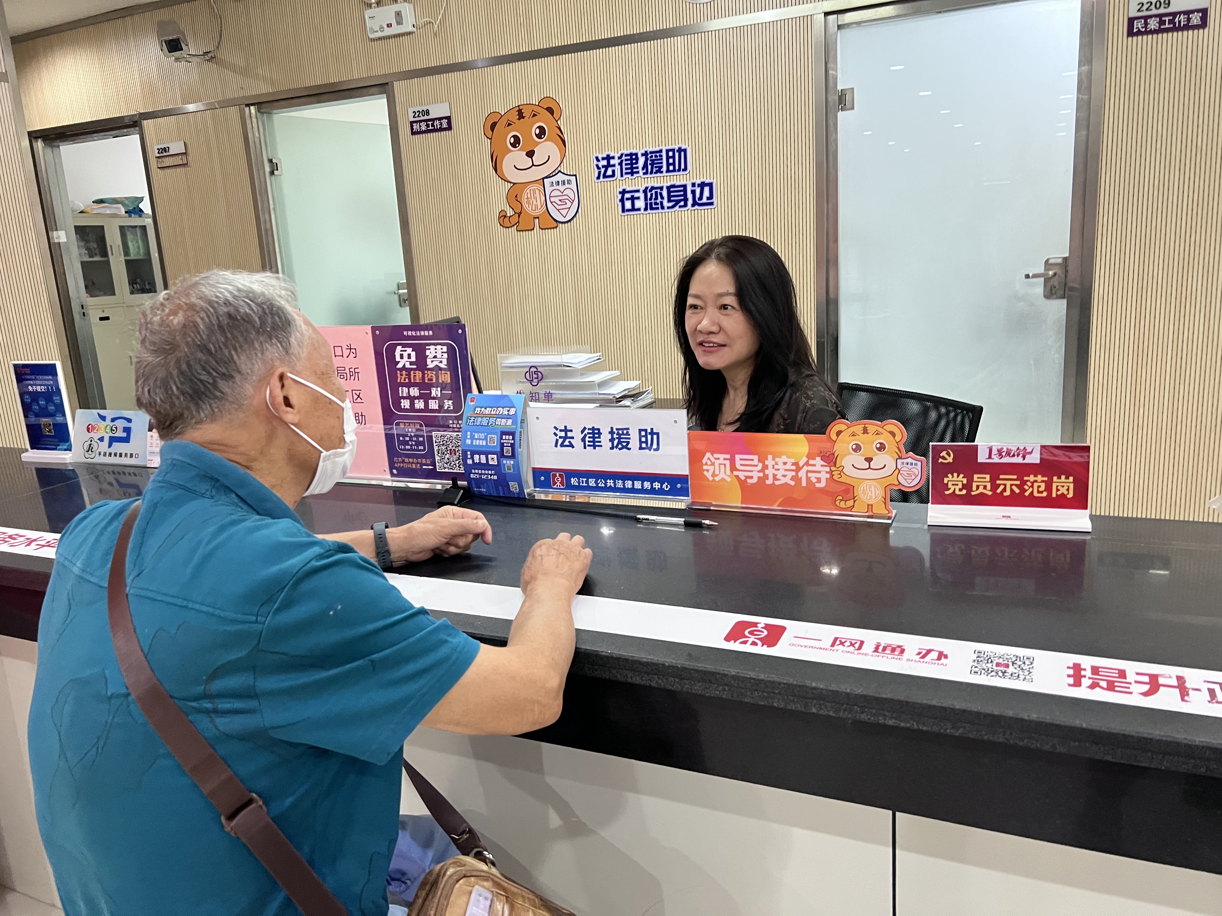 在“援松松”诞生一周年之际,正值政府开放月之时,区法律援助中心开展“法援惠民生”市民公众开放日活动。活动当天开启“首日领导接待”,松江区司法局党组成员、副局长孙禄君深入法援一线窗口,为群众提供“帮办”服务。