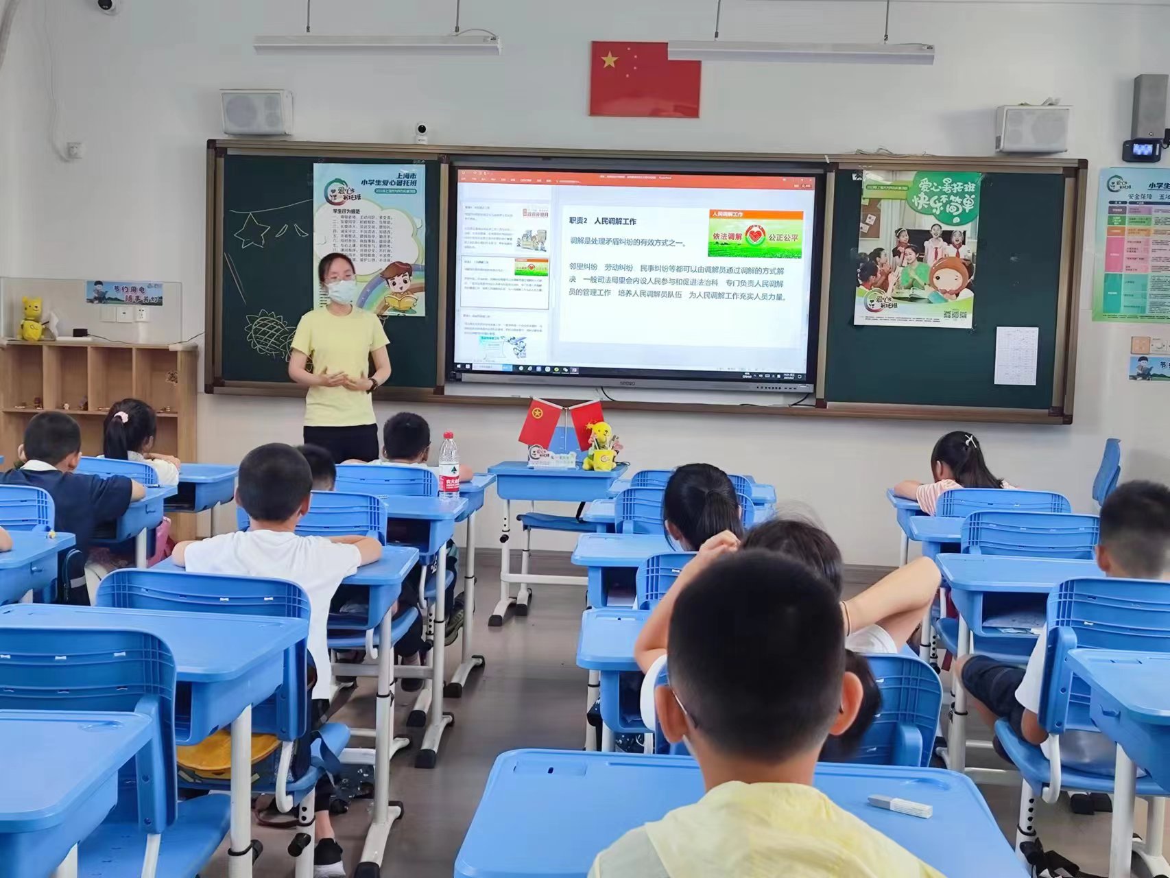 区司法局团总支联合区青年活动中心为爱心暑托班的孩子们开展法治宣讲,通过简单易懂的语言、生动有趣的故事介绍人民调解、公共法律服务等司法行政工作,用“小窗口”展示新时代司法行政“新风采”,将“法治种子”种进孩子们的心田。