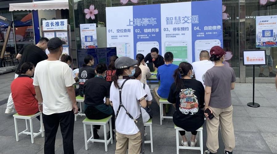 松江区交通建设管理中心开展了以“‘智慧停车’助力便捷出行”为主题的“政府开放月”活动,周边小区居民、商户和顾客参加。