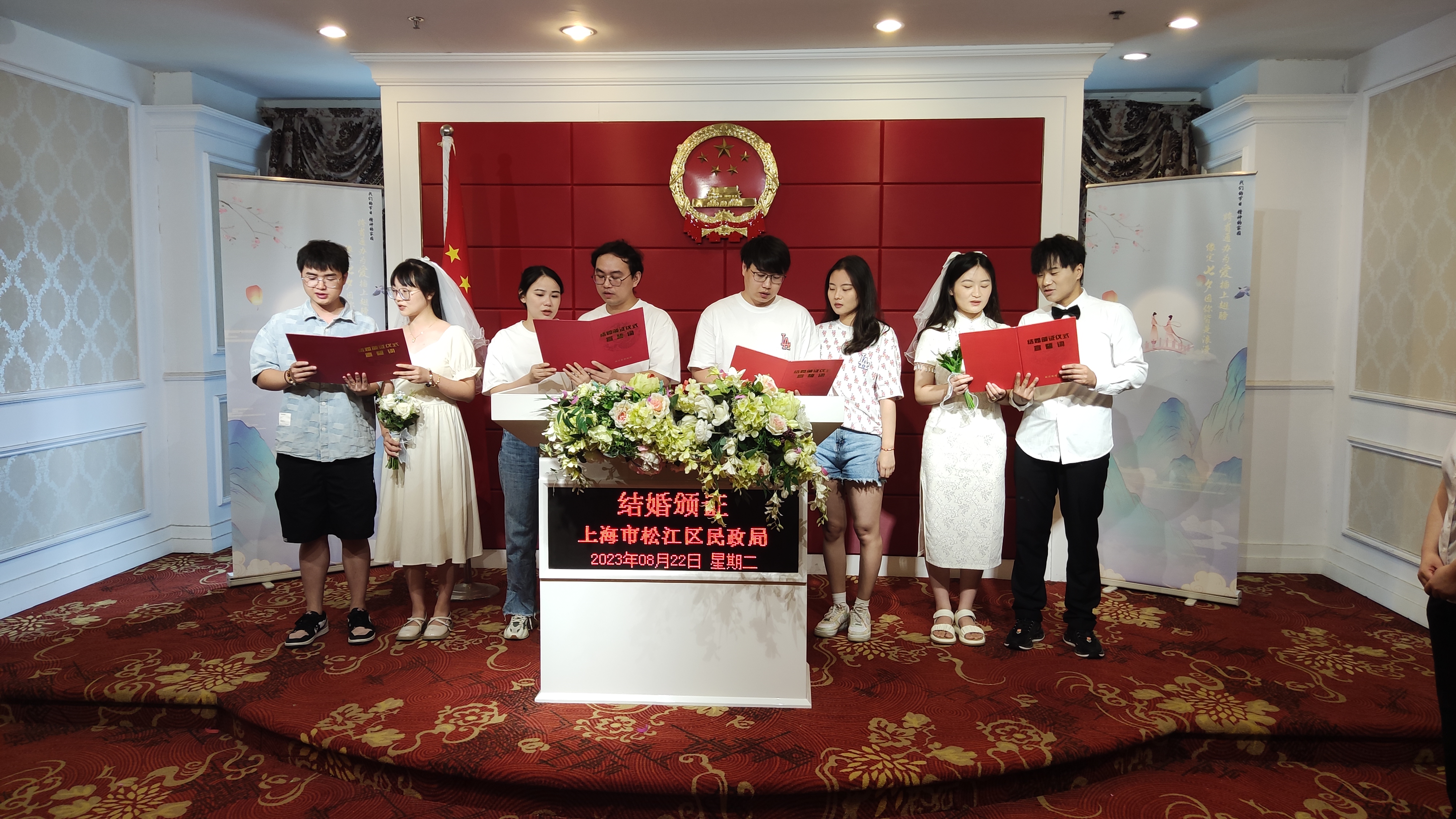 松江区民政局精心策划结婚登记颁证仪式暨政府开放日活动 2023-08-24 来源:松江区人民政府