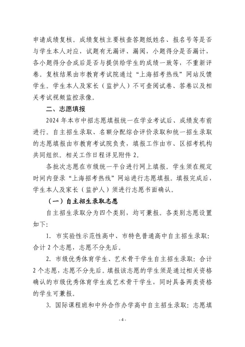 关于2024年松江区高中阶段学校考试招生工作的实施意见