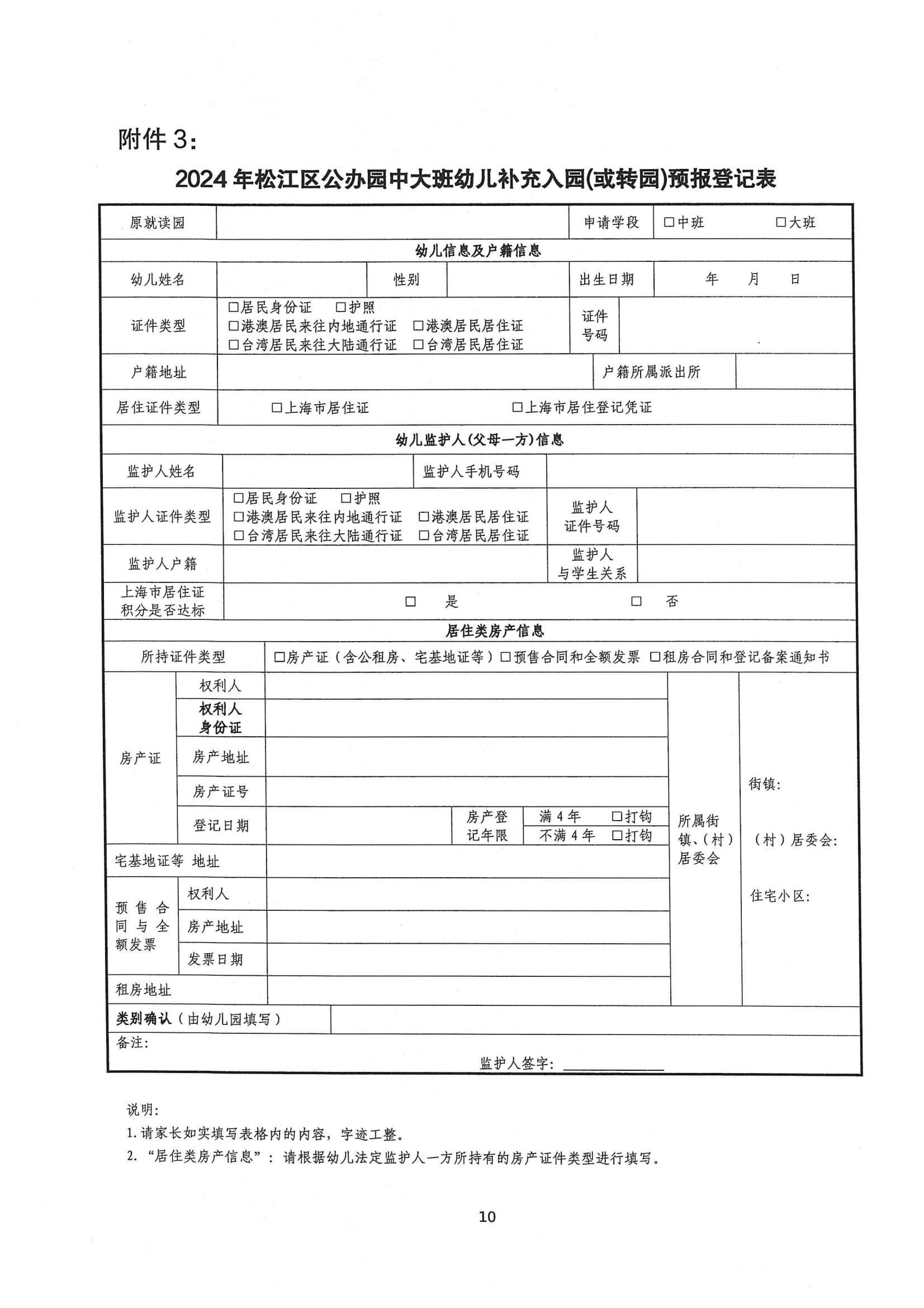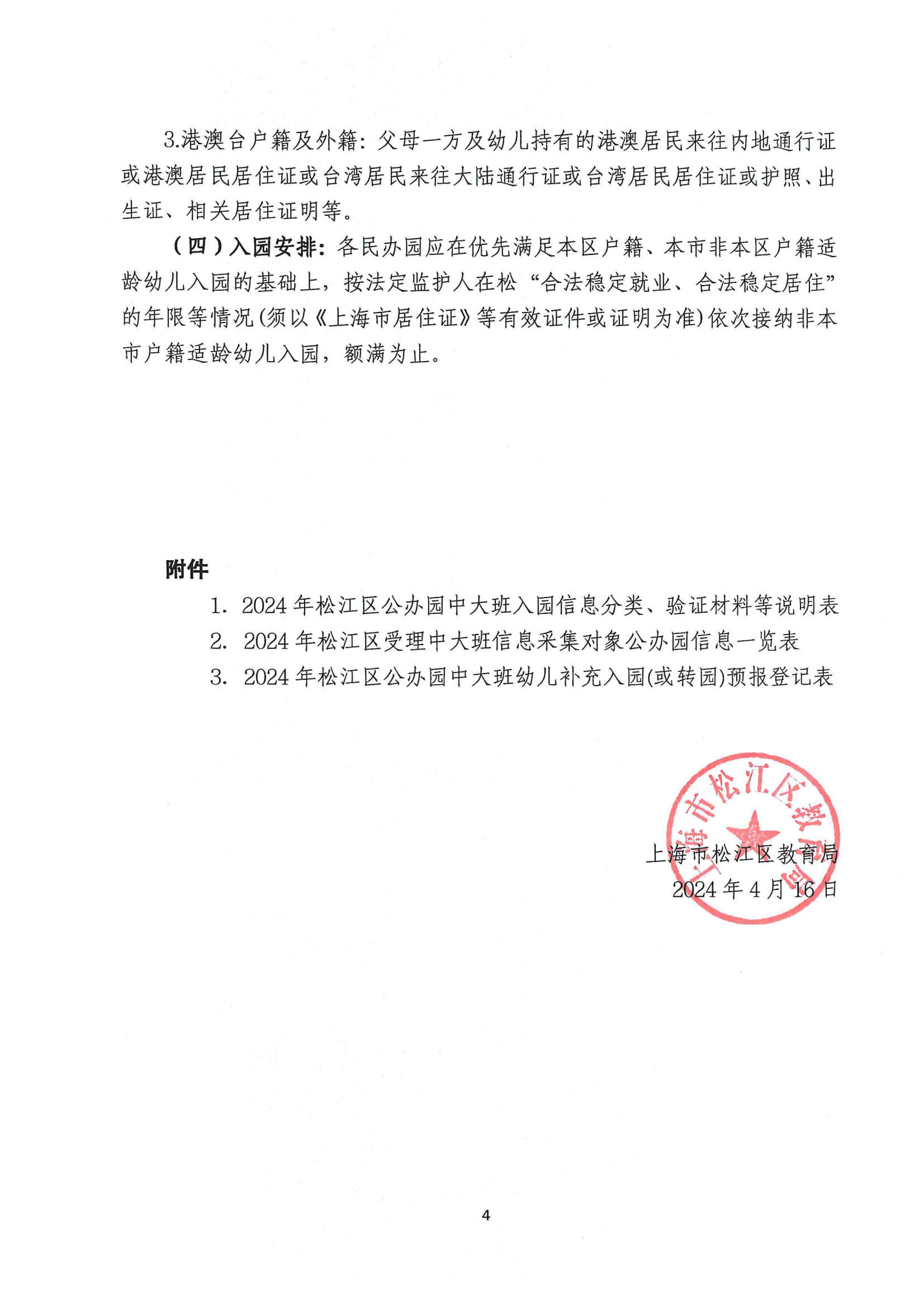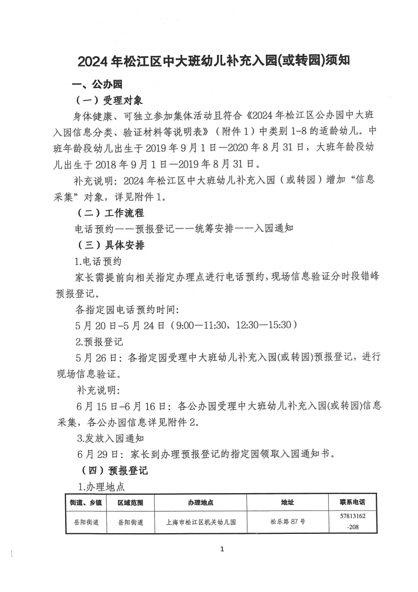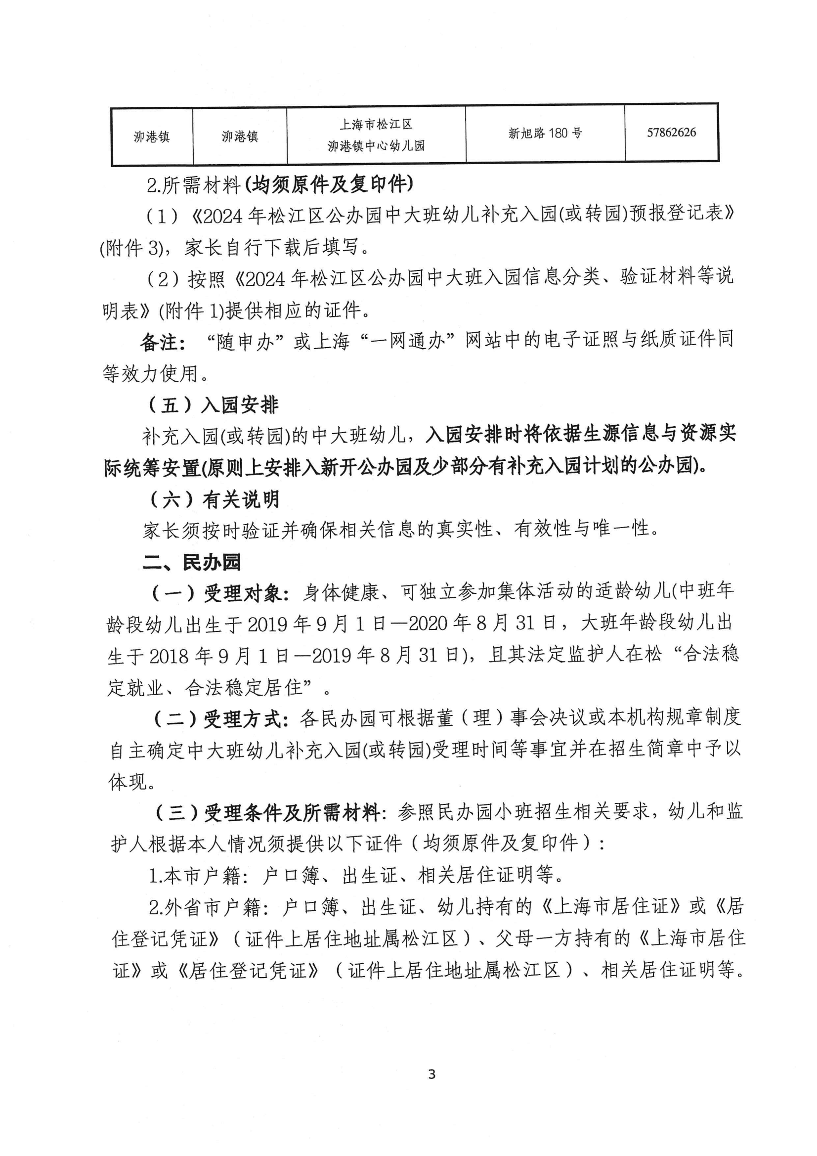 2024年松江区中大班幼儿补充入园(或转园)须知