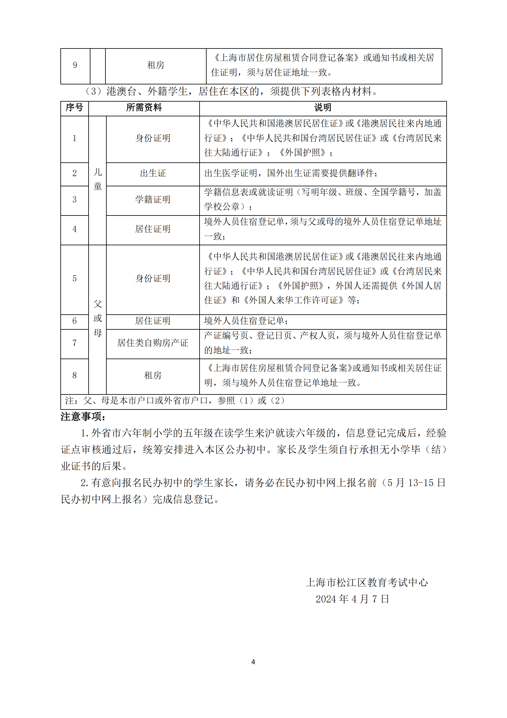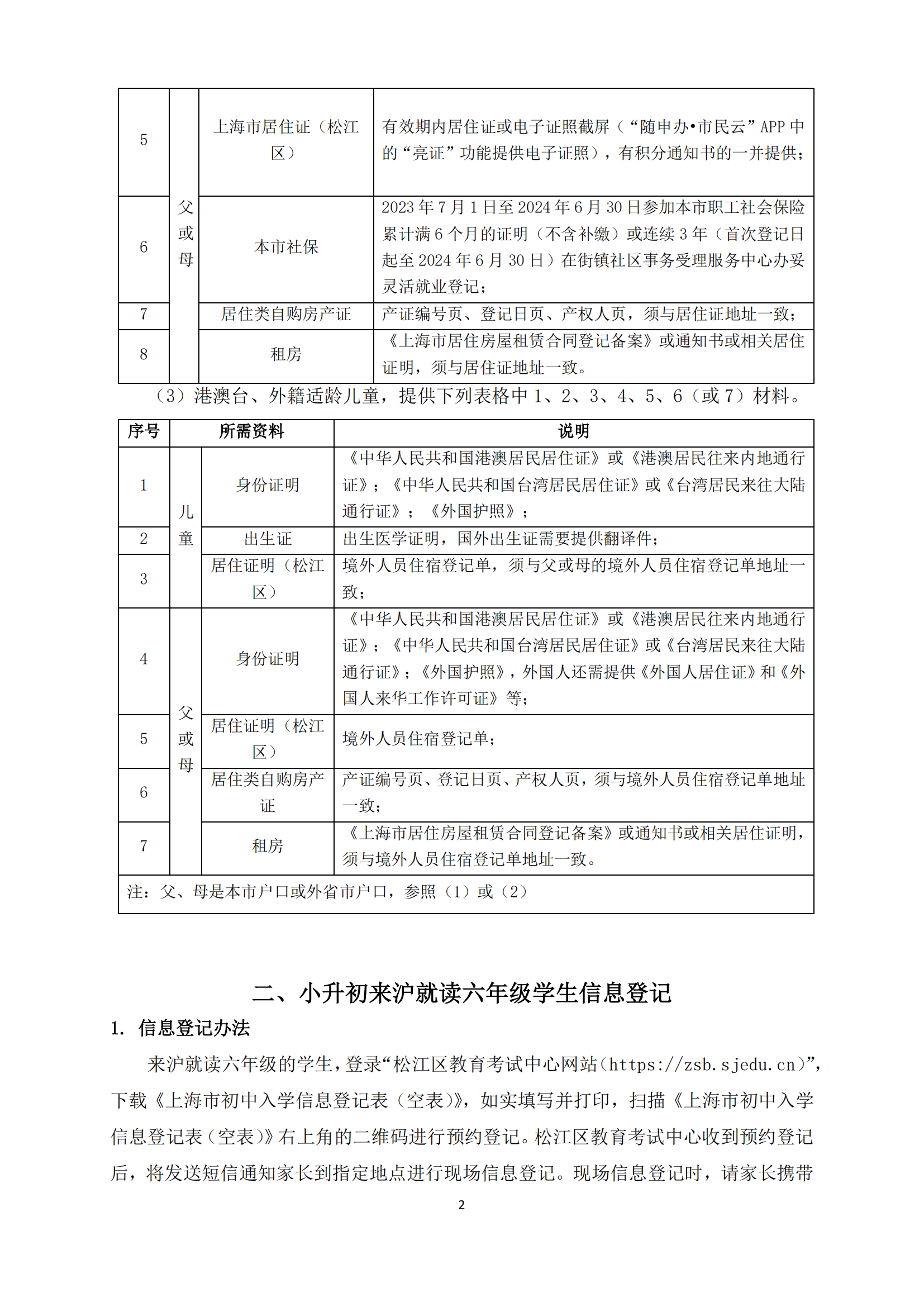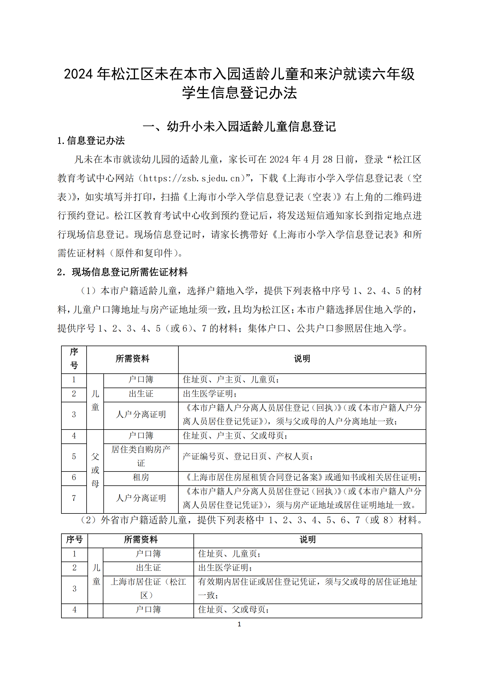 2024年松江区未在本市入园适龄儿童和来沪就读六年级学生信息登记办法