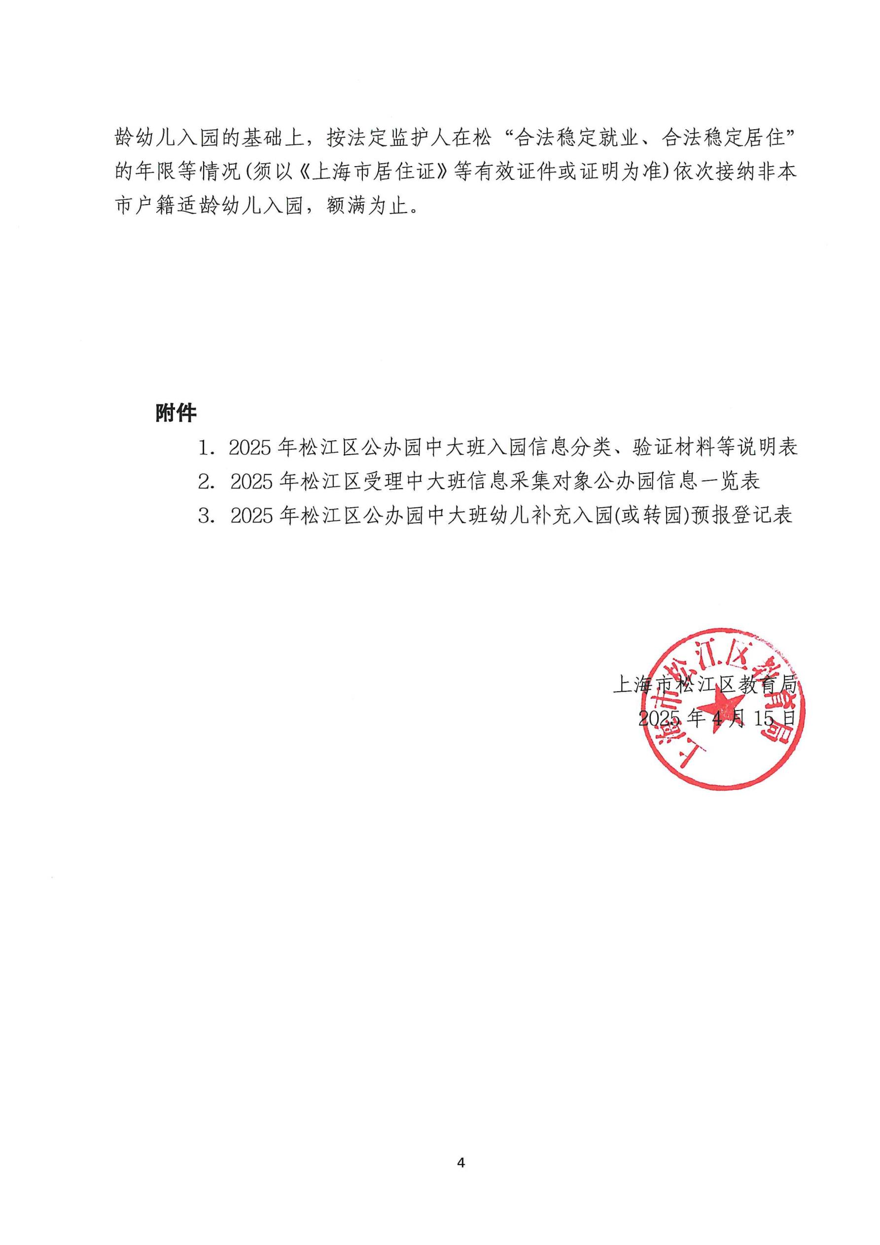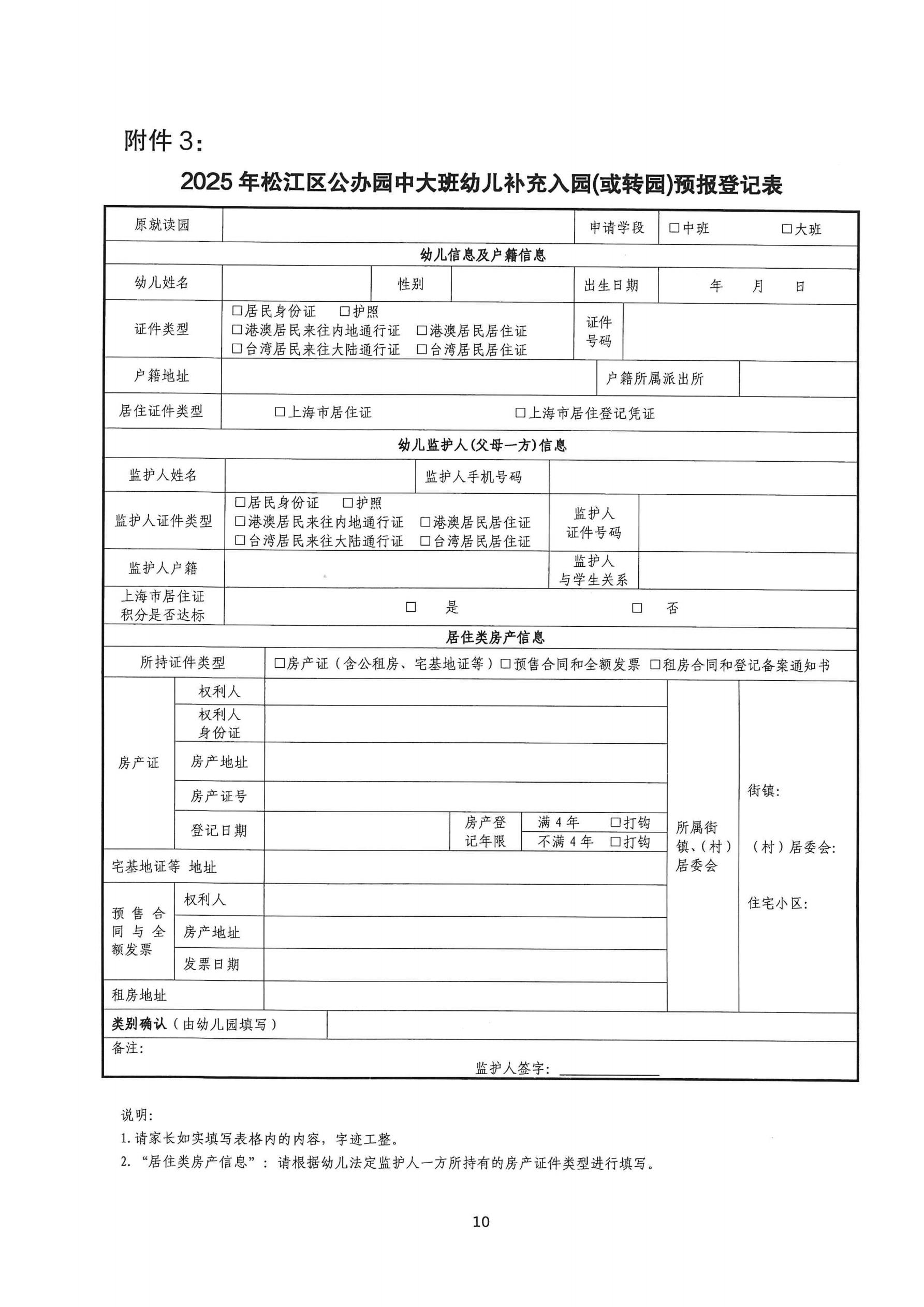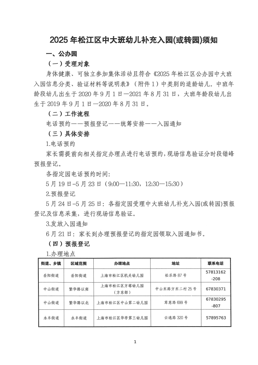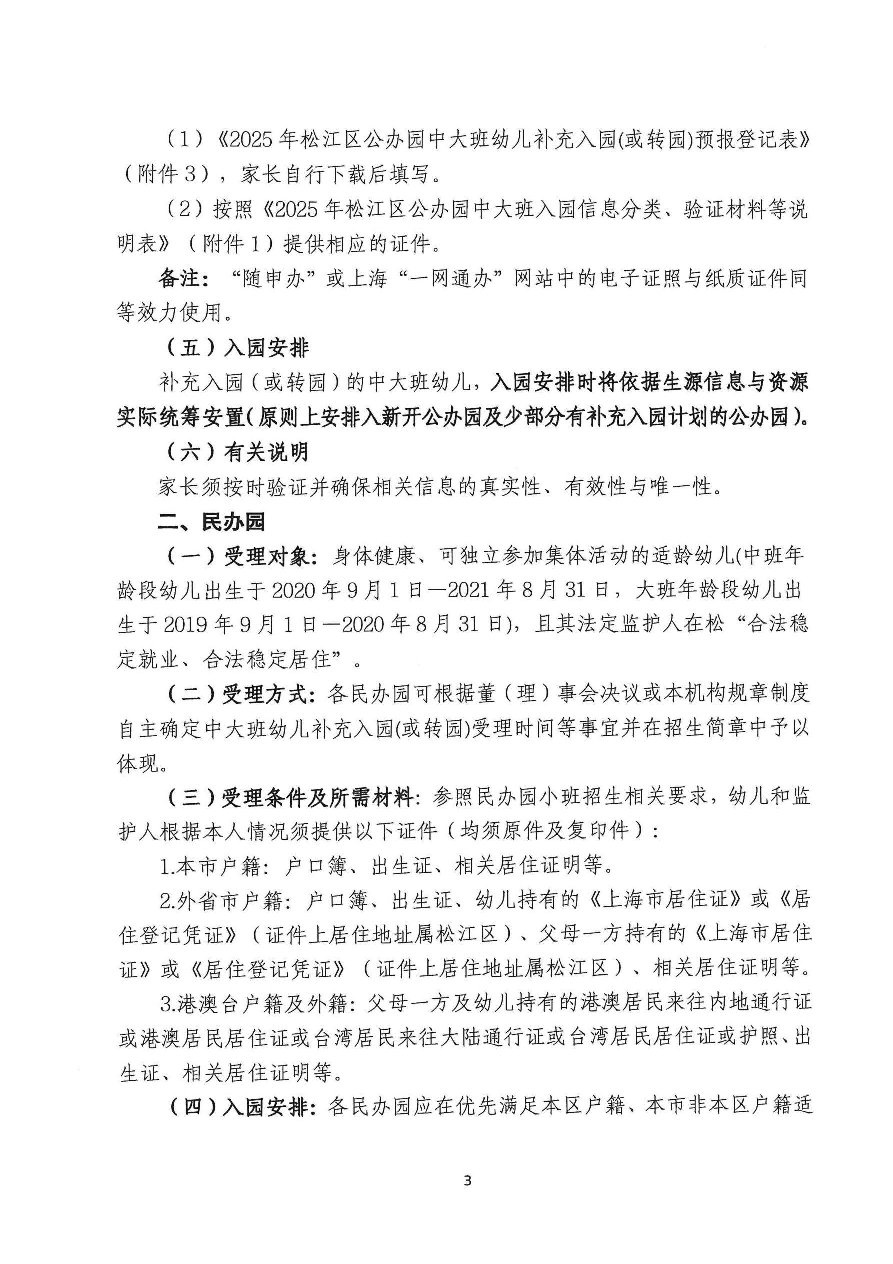 2025年松江区中大班幼儿补充入园(或转园)须知