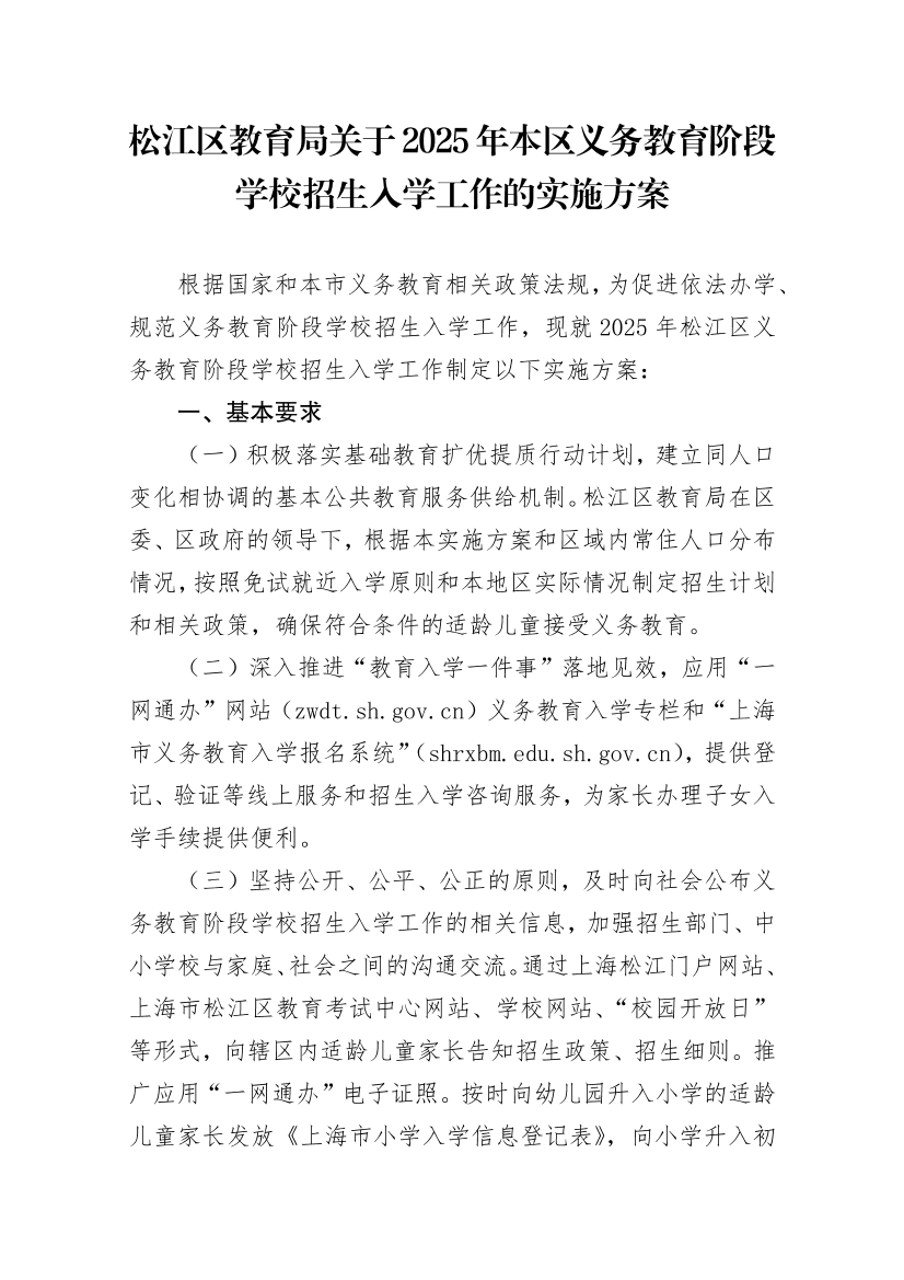 1.《松江区教育局关于2025年本区义务教育阶段学校招生入学工作的实施方案》。