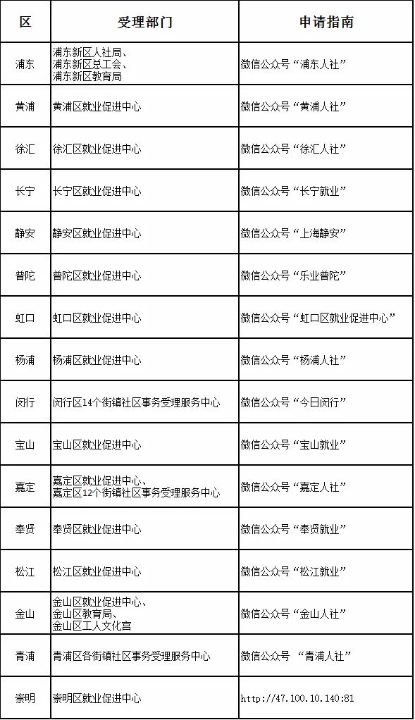 受疫情影响企业职工线上培训各区受理部门及申请指南查询方式汇总表