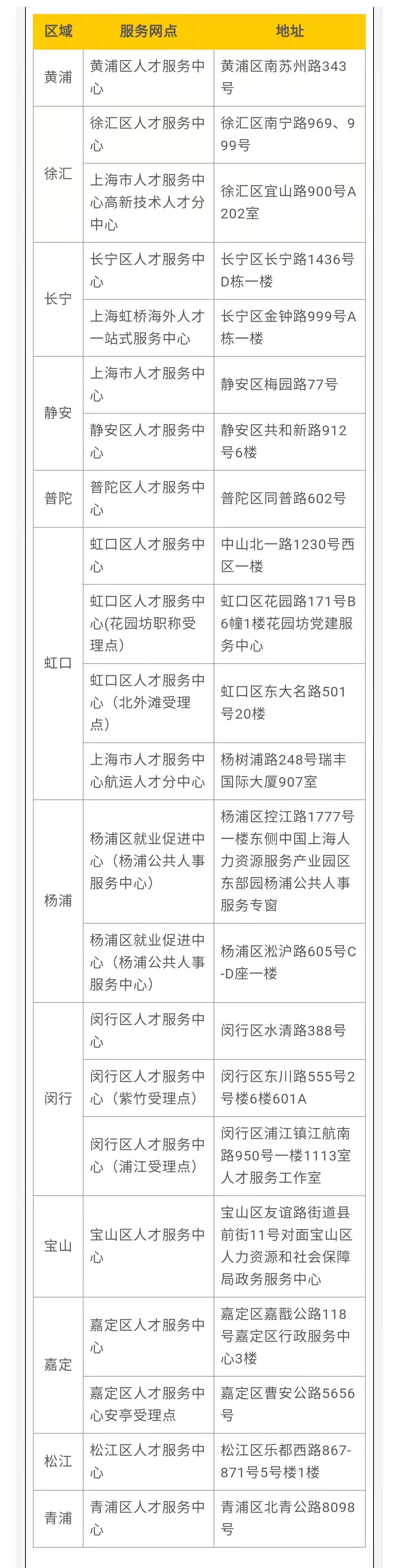 根据市新冠肺炎疫情防控工作领导小组关于在全市范围内开展新一轮切块式、网格化核酸筛查的决定,2022年4月1日至4月5日,全市人才服务中心各服务网点中,位于浦西地区的有关服务网点暂停服务,具体网点信息如下: