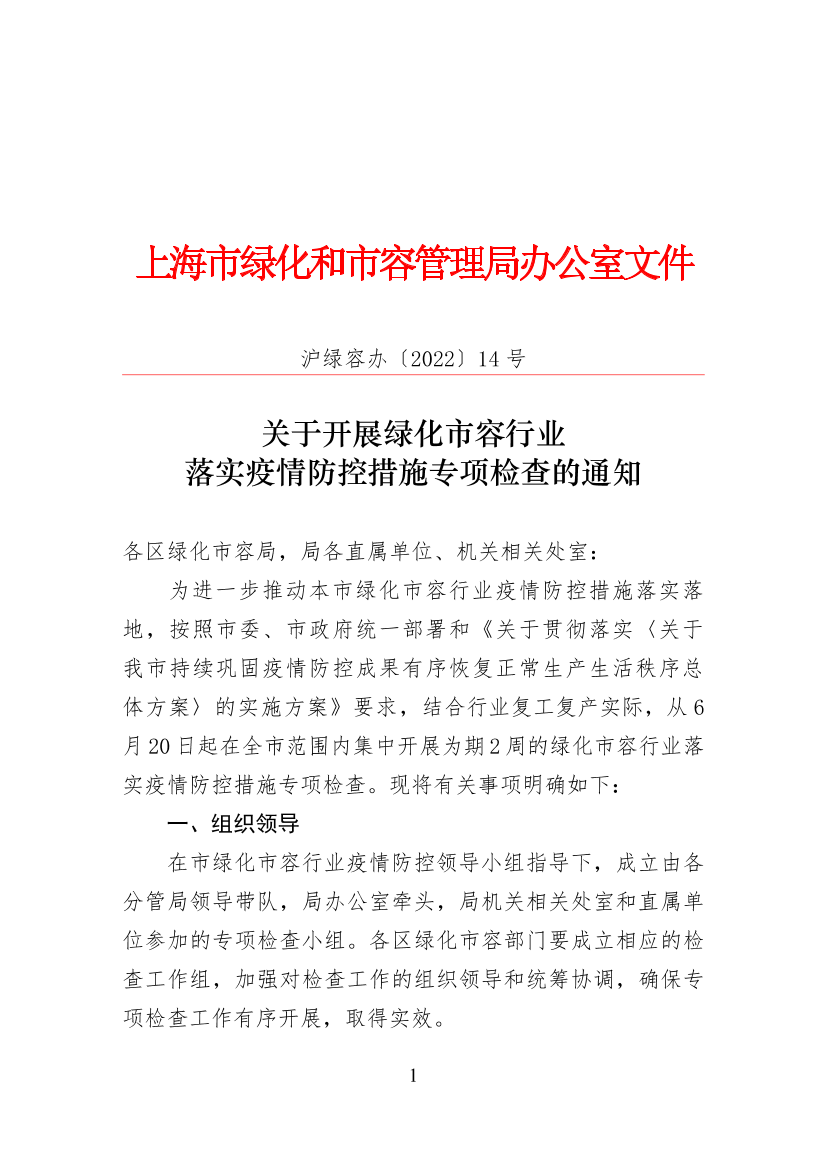 为进一步推动本市绿化市容行业疫情防控措施落实落地,按照市委、市政府统一部署和《关于贯彻落实〈关于我市持续巩固疫情防控成果有序恢复正常生产生活秩序总体方案〉的实施方案》要求,结合行业复工复产实际,从6月20日起在全市范围内集中开展为期2周的绿化市容行业落实疫情防控措施专项检查。现将有关事项明确如下: