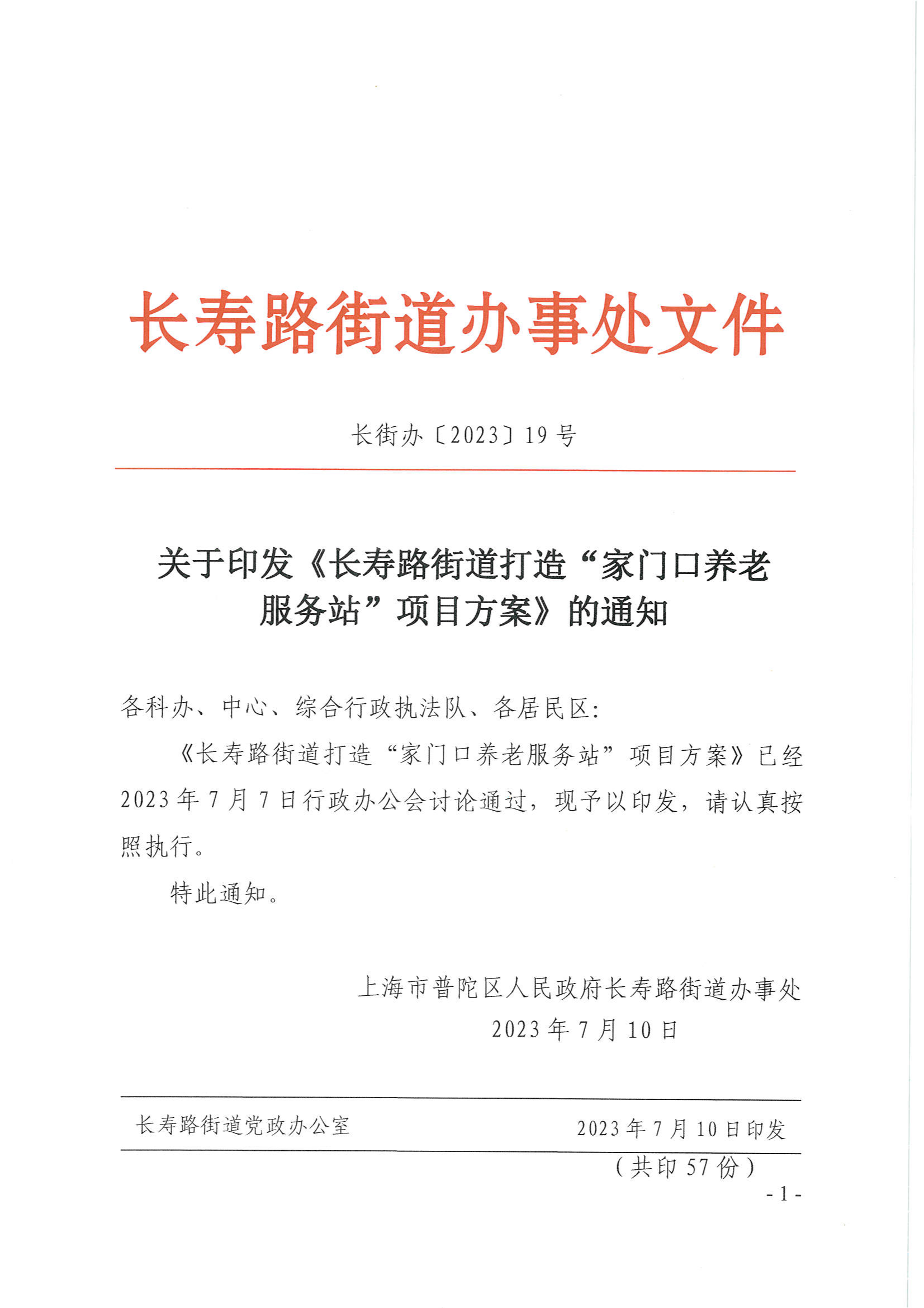 《长寿路街道打造“家门口养老服务站”项目方案》已经2023年7月7日行政办公会讨论通过,现予以印发,请认真按照执行。