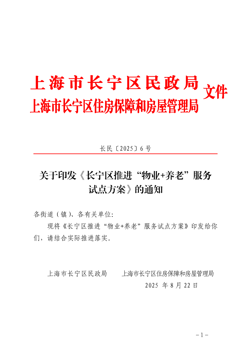 现将《长宁区推进“物业+养老”服务试点方案》印发给你们,请结合实际推进落实。
