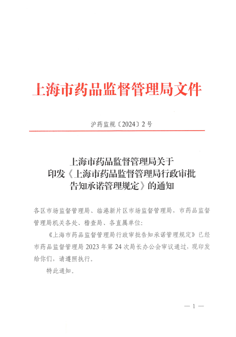 关于印发《上海市药品监督管理局行政审批告知承诺管理规定》的通知