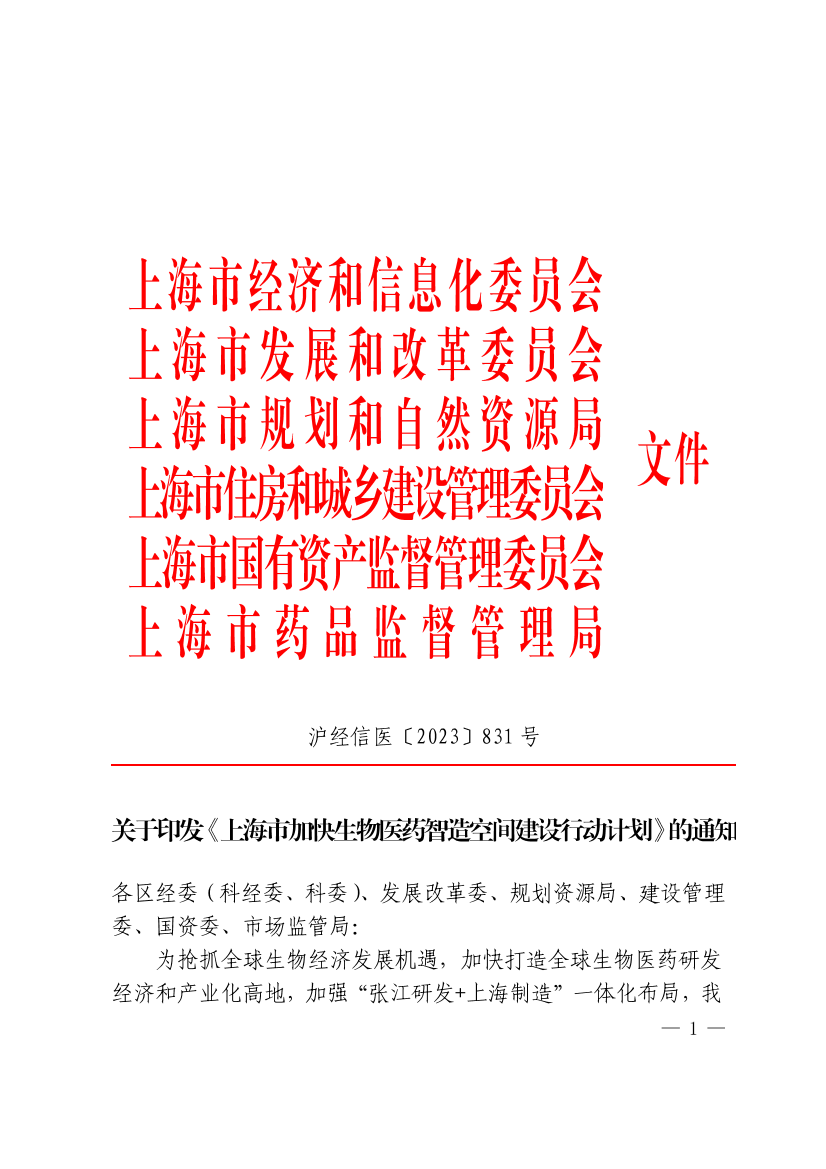 为抢抓全球生物经济发展机遇,加快打造全球生物医药研发经济和产业化高地,加强“张江研发+上海制造”一体化布局,我们制定了《上海市加快生物医药智造空间建设行动计划》,现印发给你们,请遵照执行。