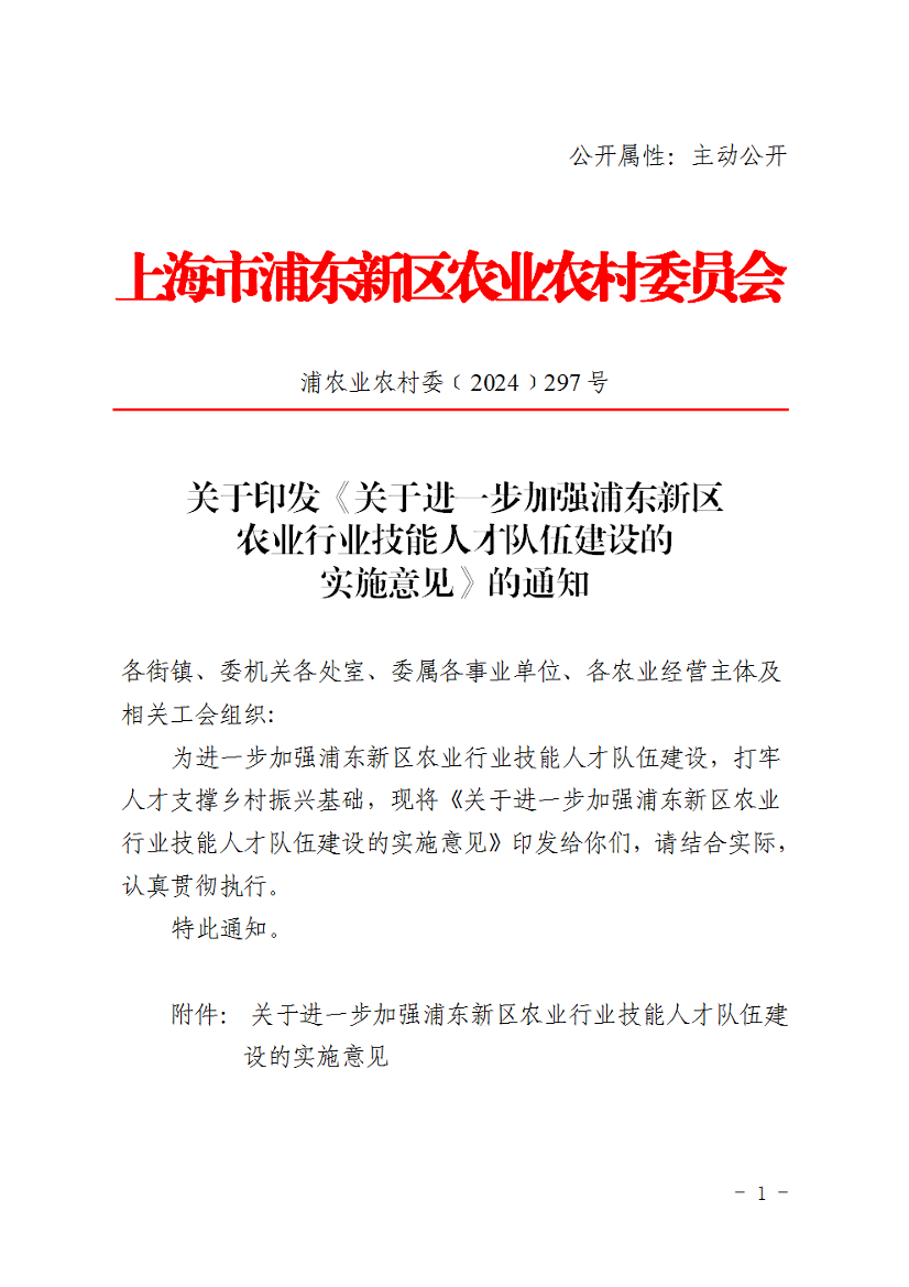 附件: 关于进一步加强浦东新区农业行业技能人才队伍建设的实施意见