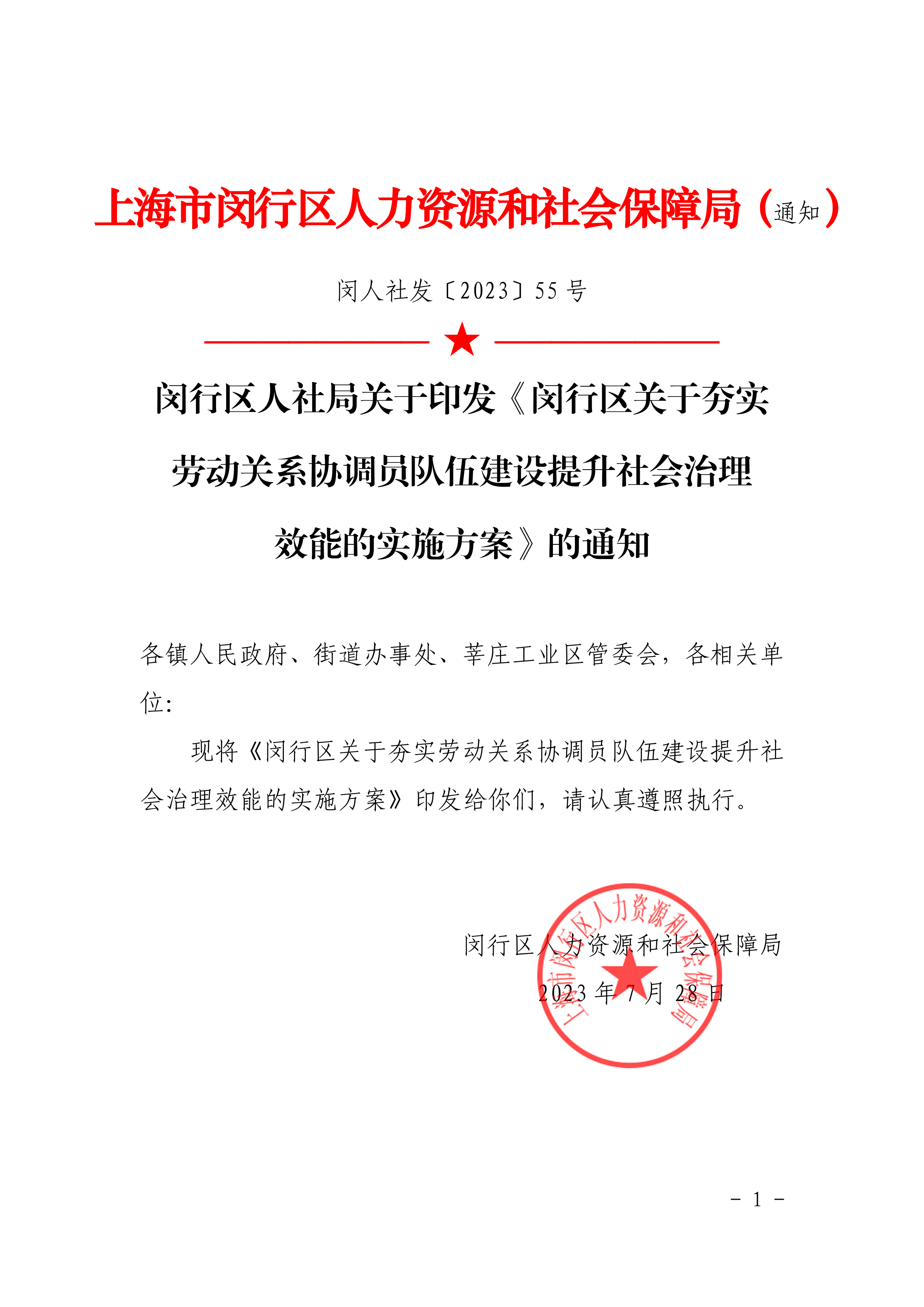 关于印发《闵行区关于夯实劳动关系协调员队伍建设提升社会治理效能的实施方案》的通知