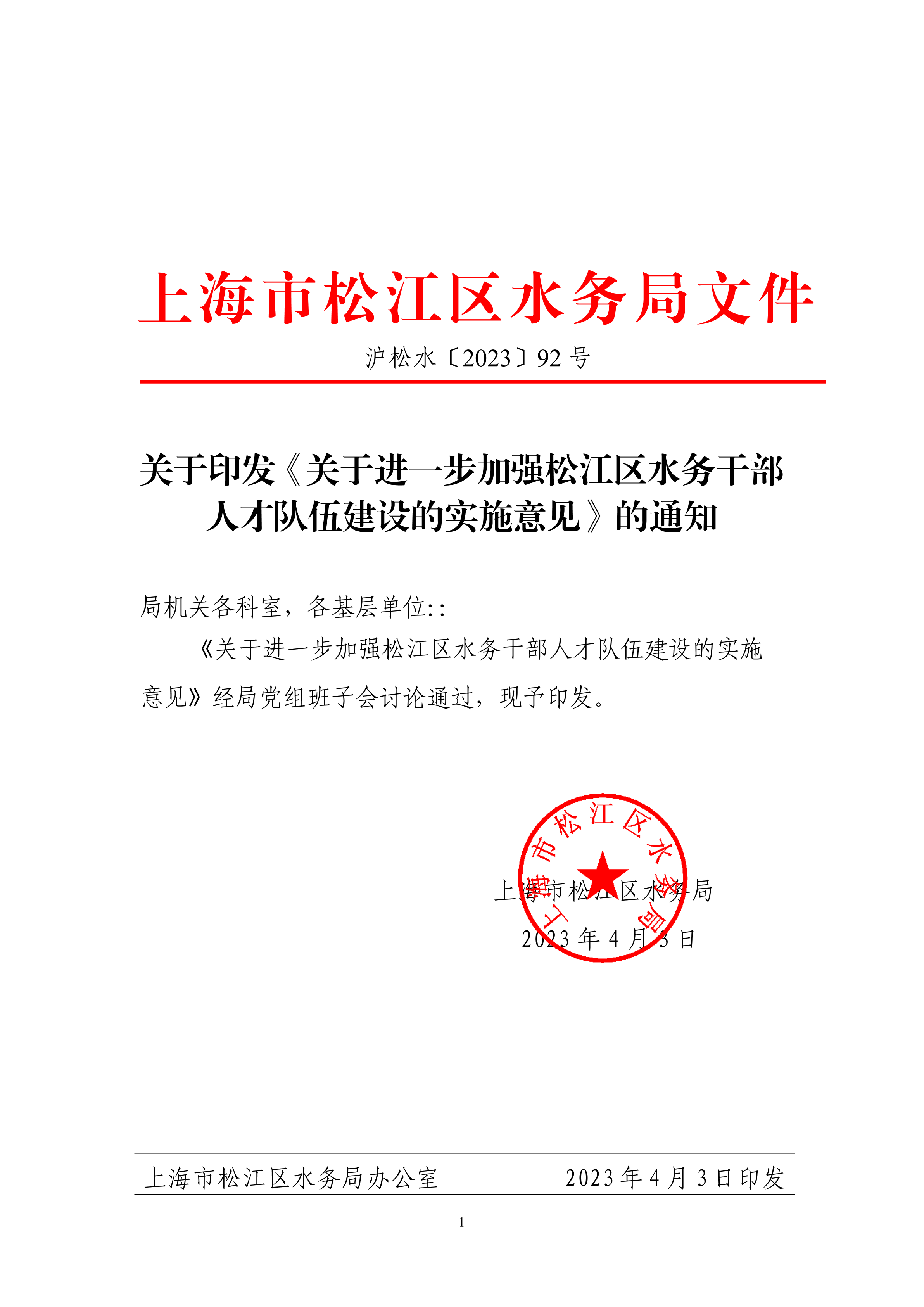 关于印发《关于进一步加强松江区水务干部人才队伍建设的实施意见》的通知