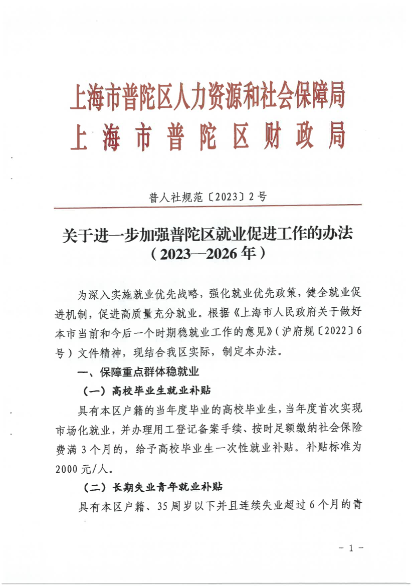 为深入实施就业优先战略,强化就业优先政策,健全就业促进机制,促进高质量充分就业。根据《上海市人民政府关于做好本市当前和今后一个时期稳就业工作的意见》(沪府规〔2022〕6号)文件精神,现结合我区实际,制定本办法。