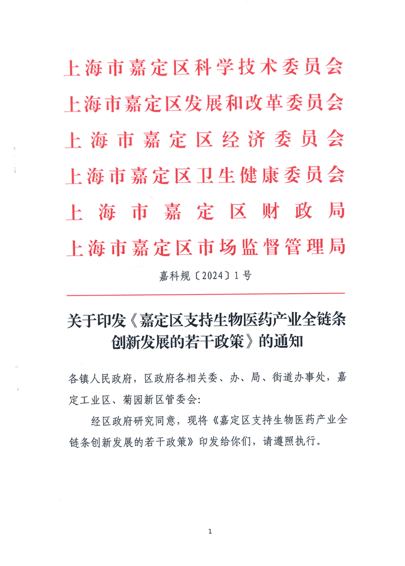 为全面贯彻落实《全链条支持创新药发展实施方案》(国办发〔2024〕37号)、《上海市人民政府办公厅关于支持生物医药产业全链条创新发展的若干意见》(沪府办规〔2024〕9号)等文件精神,加快推动我区生物医药产业高质量发展,培育和发展生物医药新质生产力,特制定本政策。