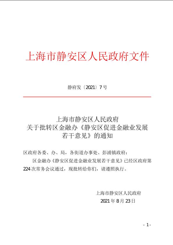 区金融办《静安区促进金融业发展若干意见》已经区政府第224次常务会议通过,现批转给你们,请遵照执行。