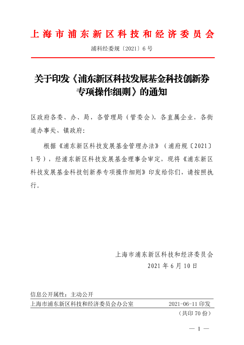 关于印发《浦东新区科技发展基金科技创新券专项操作细则》的通知