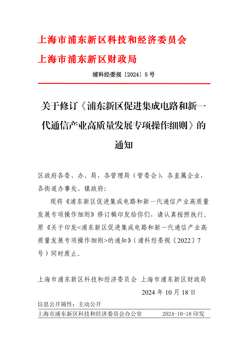 浦东新区促进集成电路和新一代通信产业高质量发展专项操作细则