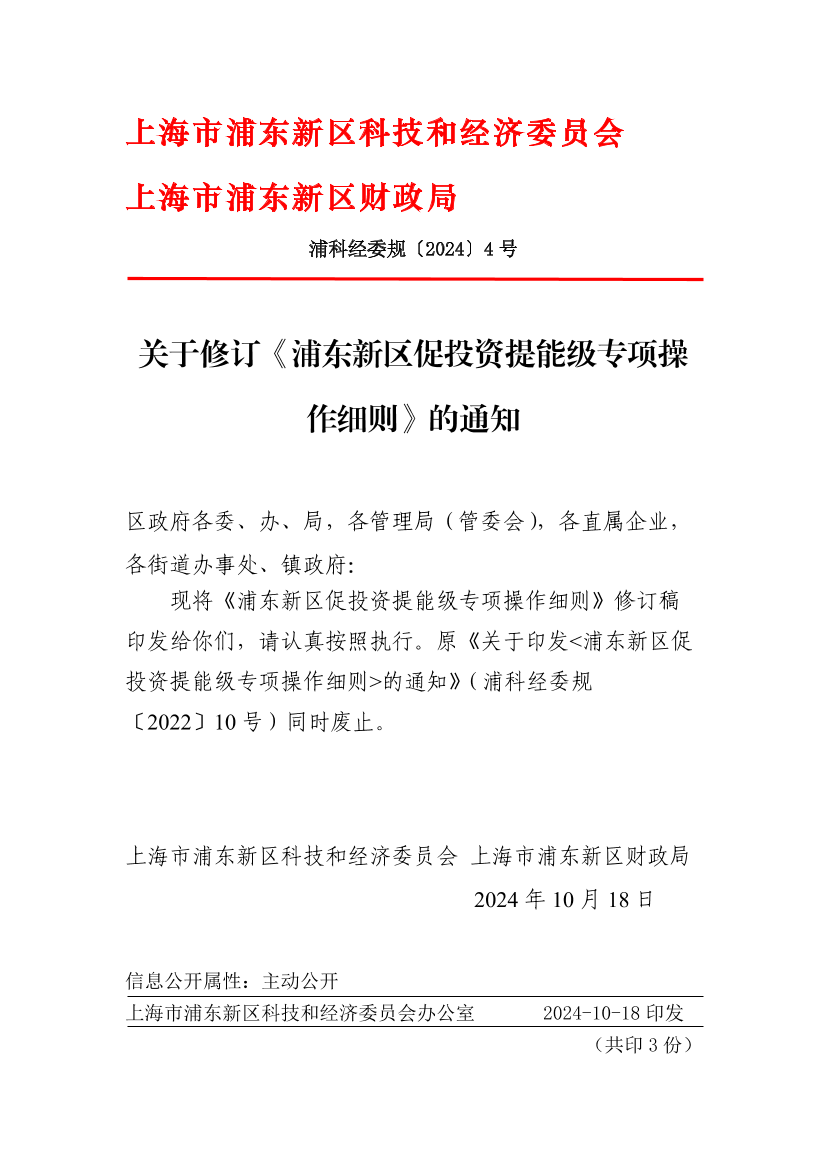 现将《浦东新区促投资提能级专项操作细则》修订稿印发给你们,请认真按照执行。原《关于印发<浦东新区促投资提能级专项操作细则>的通知》(浦科经委规〔2022〕10号)同时废止。
