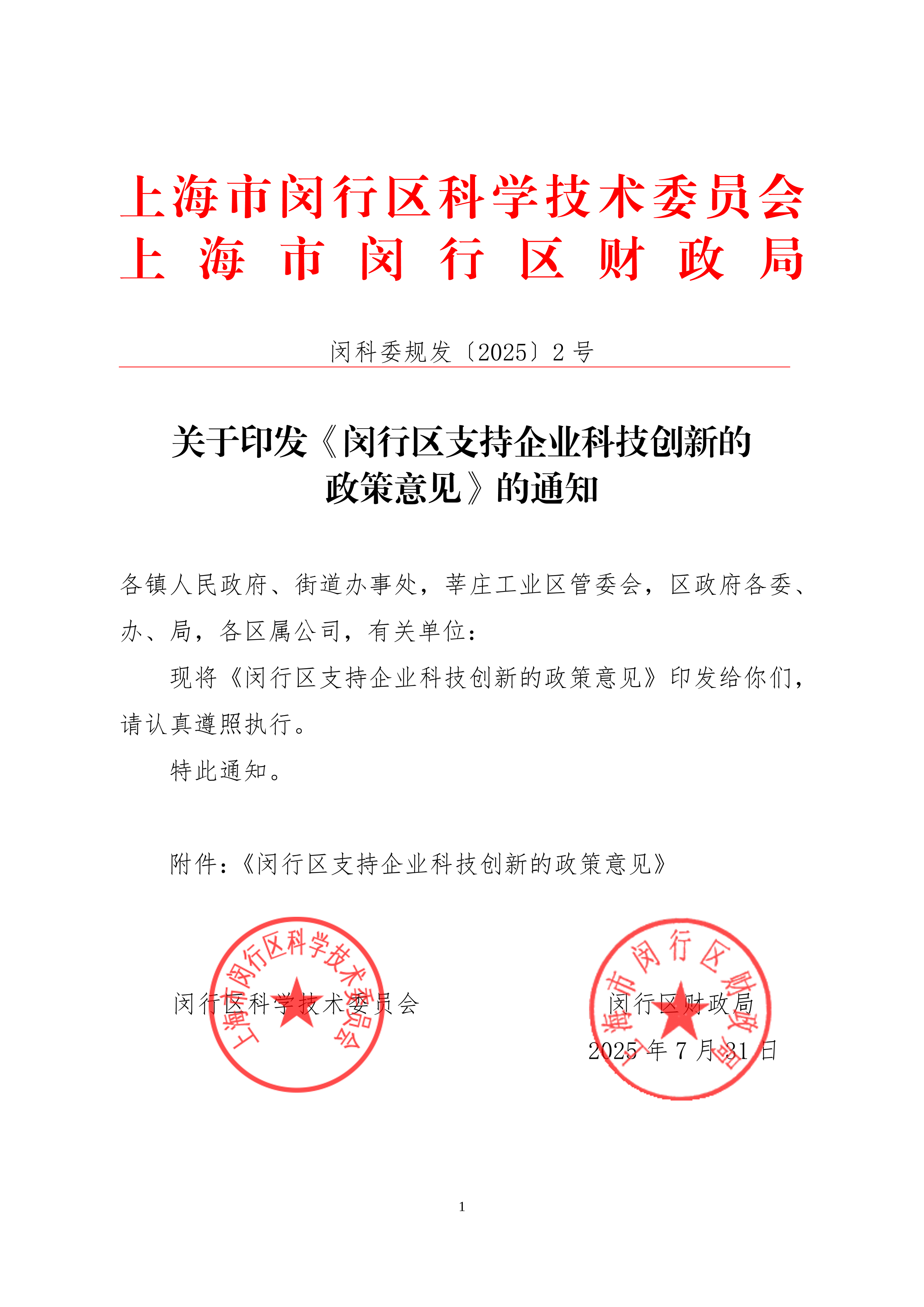 附件:《闵行区支持企业科技创新的政策意见》