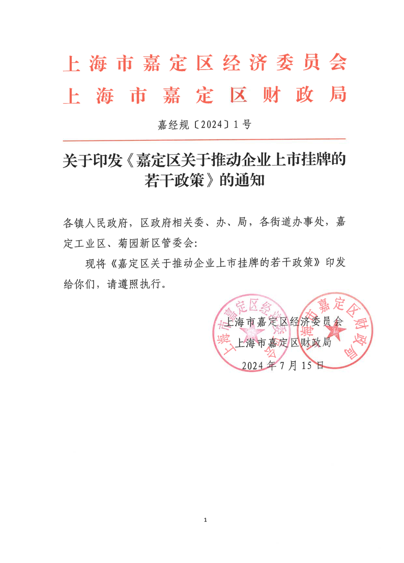 (六)本政策自2024年8月15日起生效,有效期5年。《嘉定区推动企业上市和挂牌的若干意见》(嘉商〔2020〕9号)同时废止。2023年1月1日起至生效之日期间,符合本政策扶持条件的相关事项,参照本政策执行。