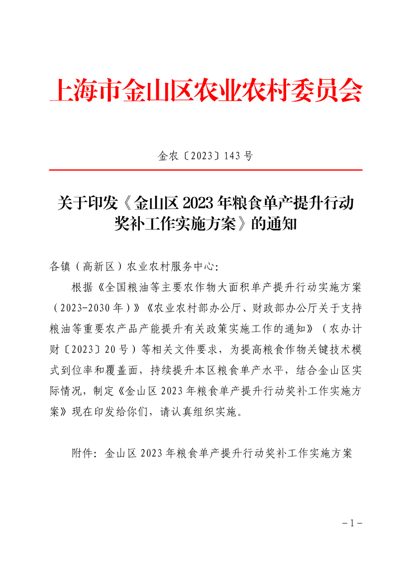 附件:金山区2023年粮食单产提升行动奖补工作实施方案