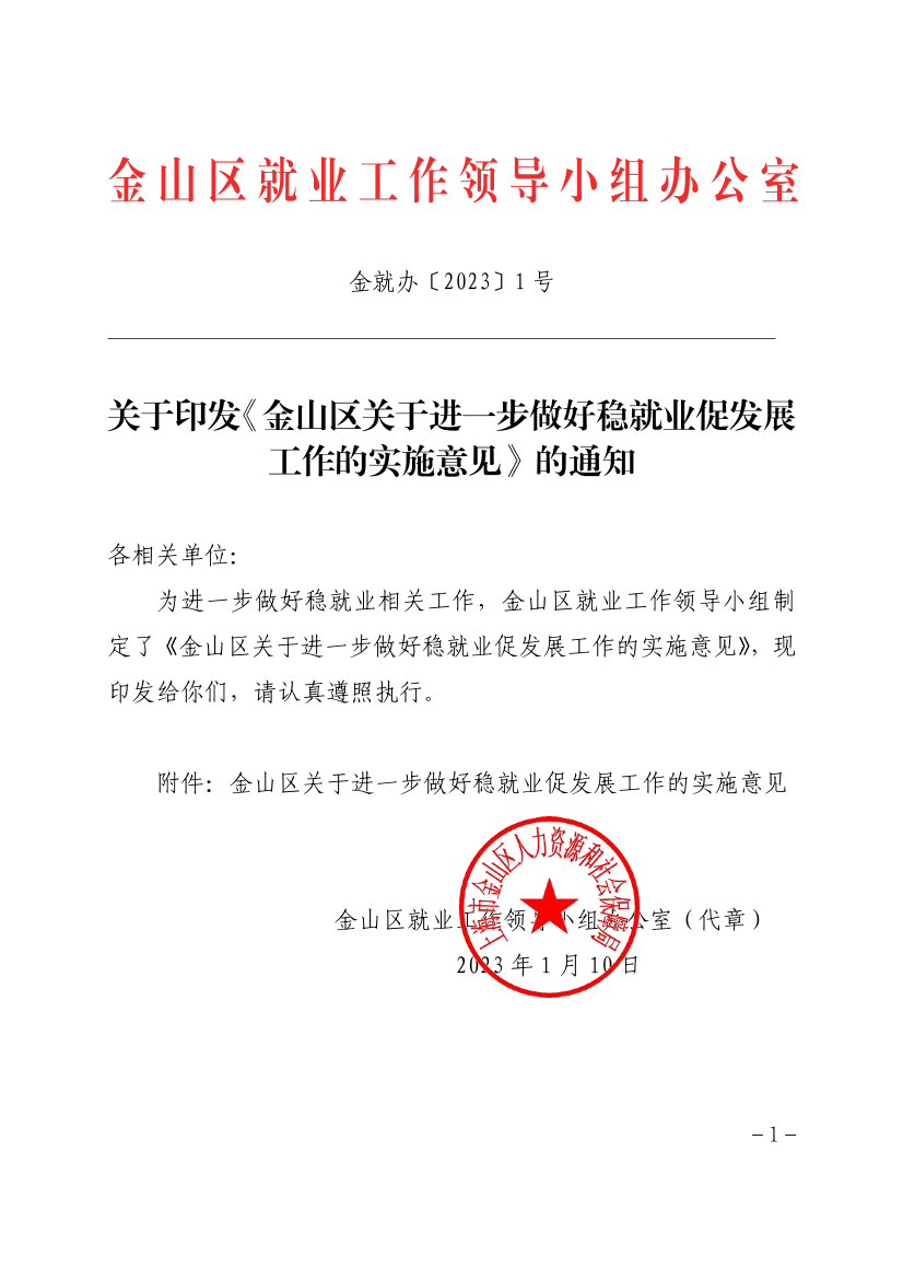 关于印发《金山区关于进一步做好稳就业促发展工作的实施意见》的通知