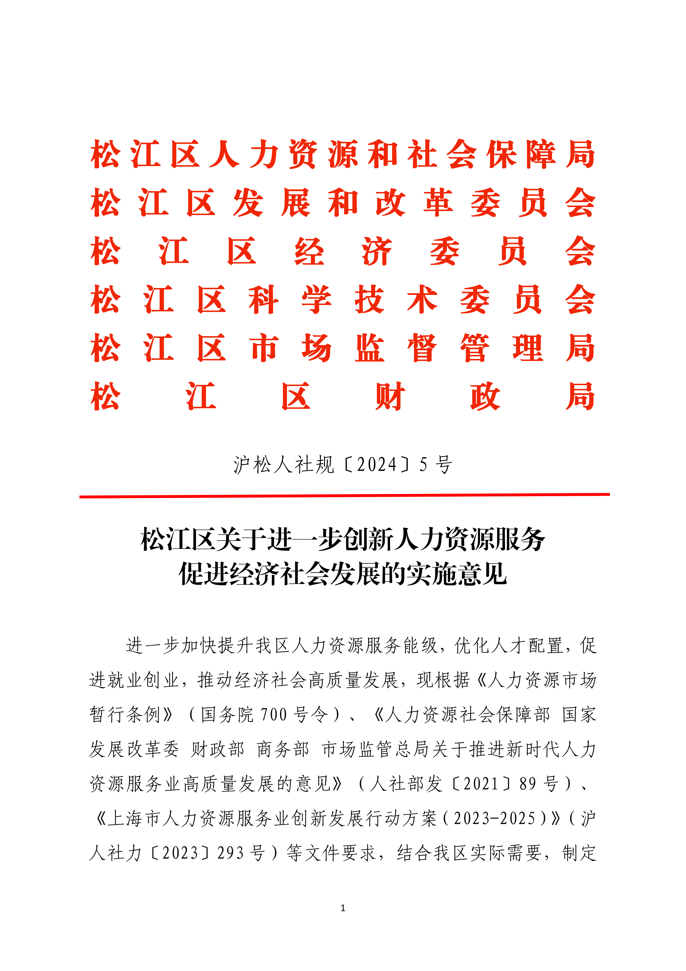 松江区关于进一步创新人力资源服务促进经济社会发展的实施意见
