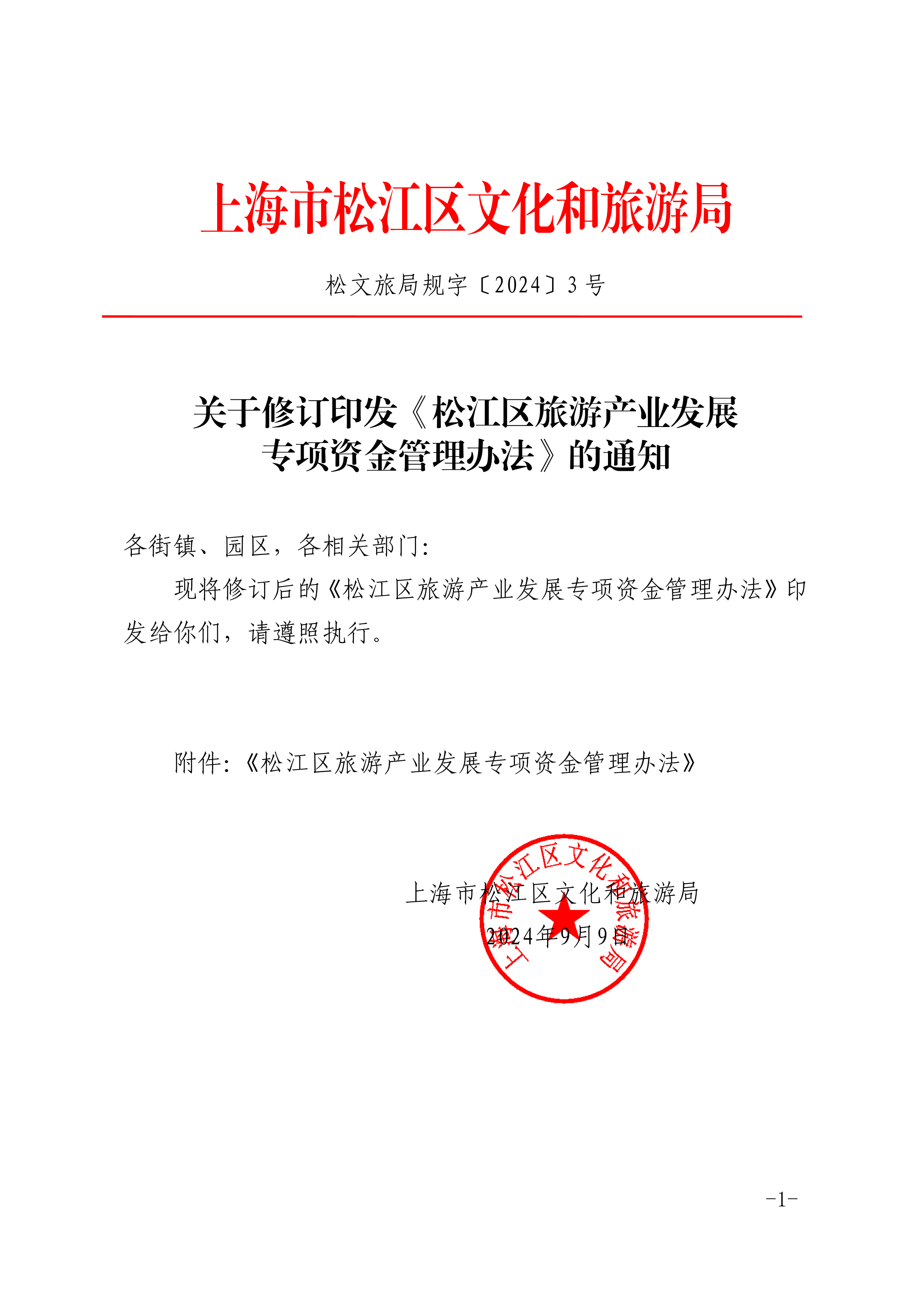 关于修订印发《松江区旅游产业发展专项资金管理办法》的通知